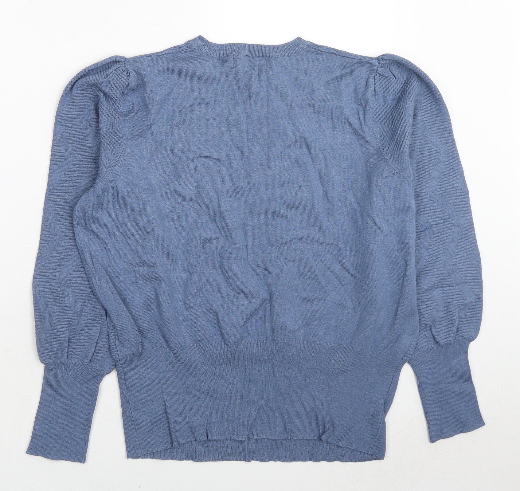 Womens Blue Round Neck Viscose Pullover Jumper Size L