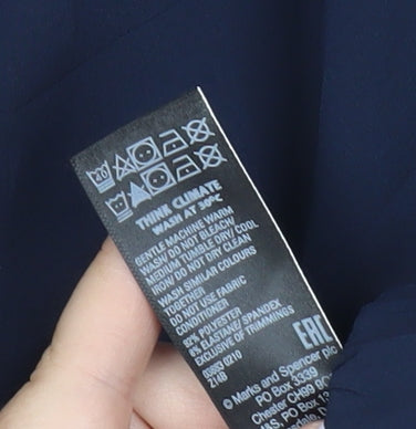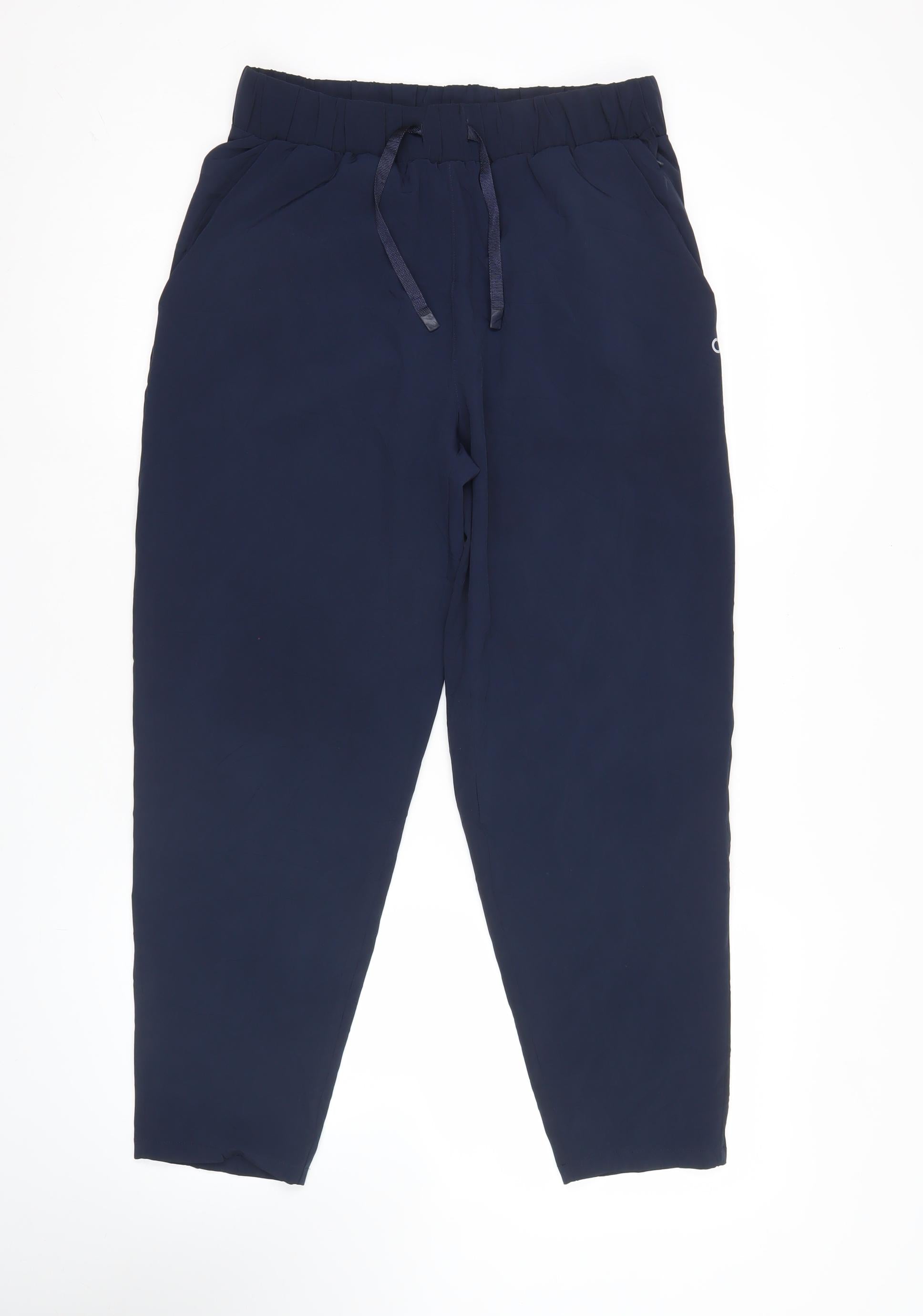 Discover effortless style and comfort with these Marks and Spencer women's jogger trousers in a chic navy blue shade. Designed for contemporary yet practical wear, these trousers are crafted from a soft and durable blend of 63% polyester, 33% viscose, and 4% elastane, ensuring a breathable, lightweight fit with just the right amount of stretch for all-day comfort. Featuring a flattering mid-rise waist and a tapered leg design, they offer a sleek silhouette while allowing ease of movement. The elasticated waistband and adjustable drawstring closure provide a personalised fit, making them ideal for casual days out, city breaks, or relaxed travel ensembles. Practical side pockets enhance functionality without compromising the smooth, flat-front design. Perfect for spring, summer, and autumn wear, these versatile trousers can be effortlessly styled with everything from casual tees and sneakers to stylish blouses and loafers. The timeless solid navy colour ensures they remain a wardrobe staple season after season. As a high-quality Marks and Spencer piece, these joggers promise lasting wear and timeless appeal. Despite being in excellent pre-loved condition with only very light signs of wear, they maintain their premium look and feel. Ideal for anyone seeking comfort without sacrificing style, they are a versatile choice for both laid-back weekends and smart-casual outings. Refresh your everyday wardrobe with these adaptable, easy-care joggers that combine practicality, style, and quality craftsmanship.