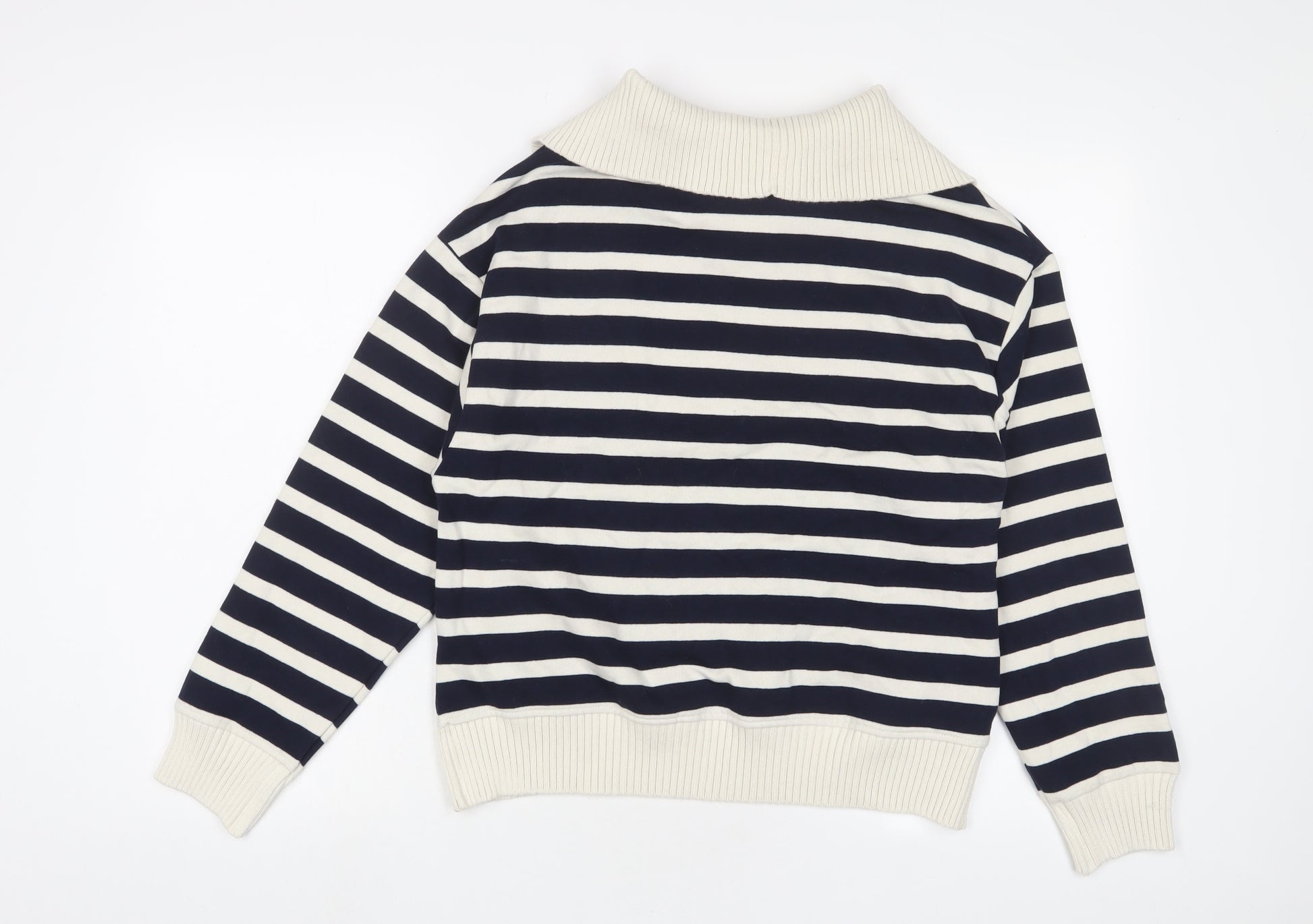 Womens Blue Striped Cotton Pullover Sweatshirt Size S Zip