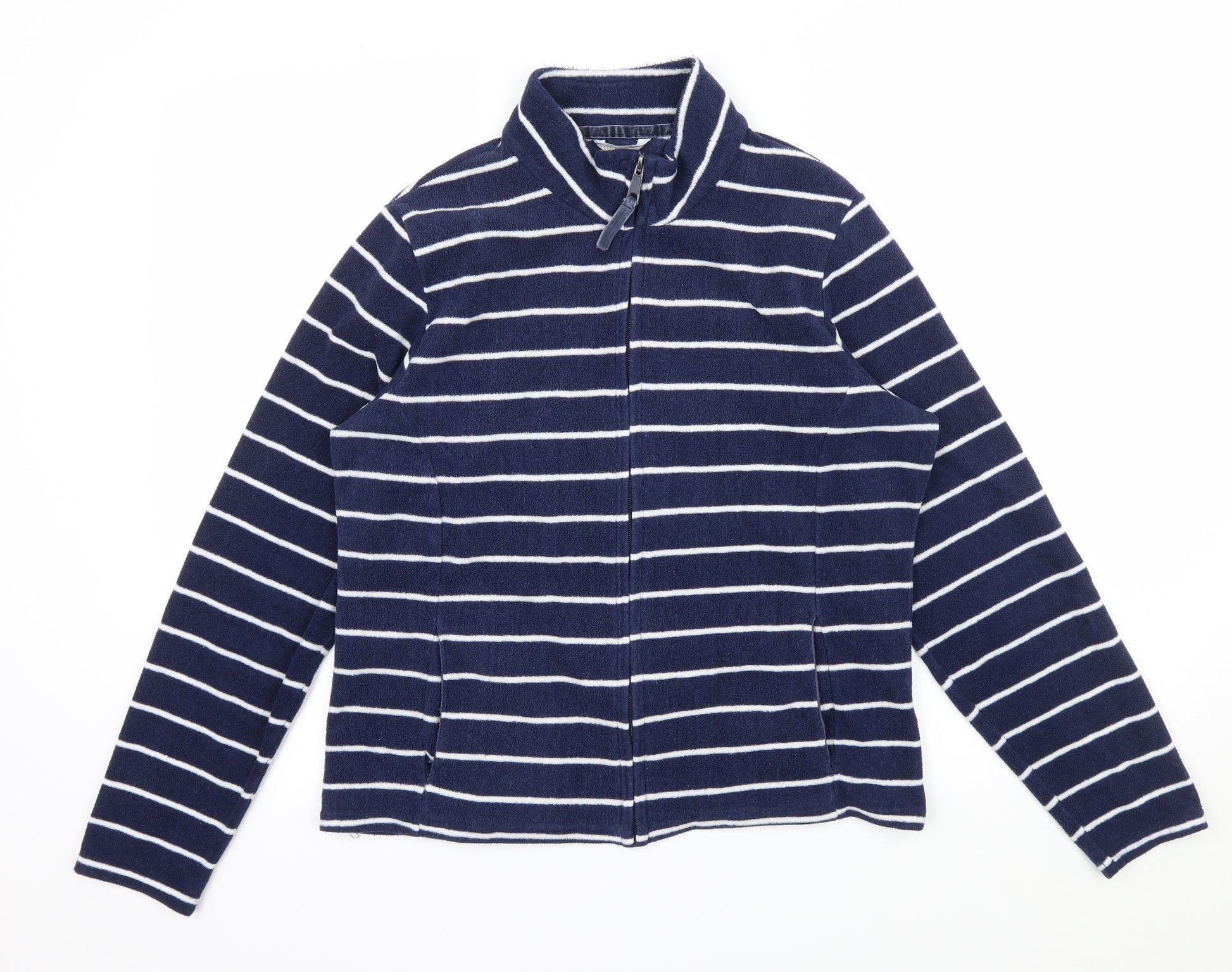 Womens Blue Striped Fleece Jacket Size 14