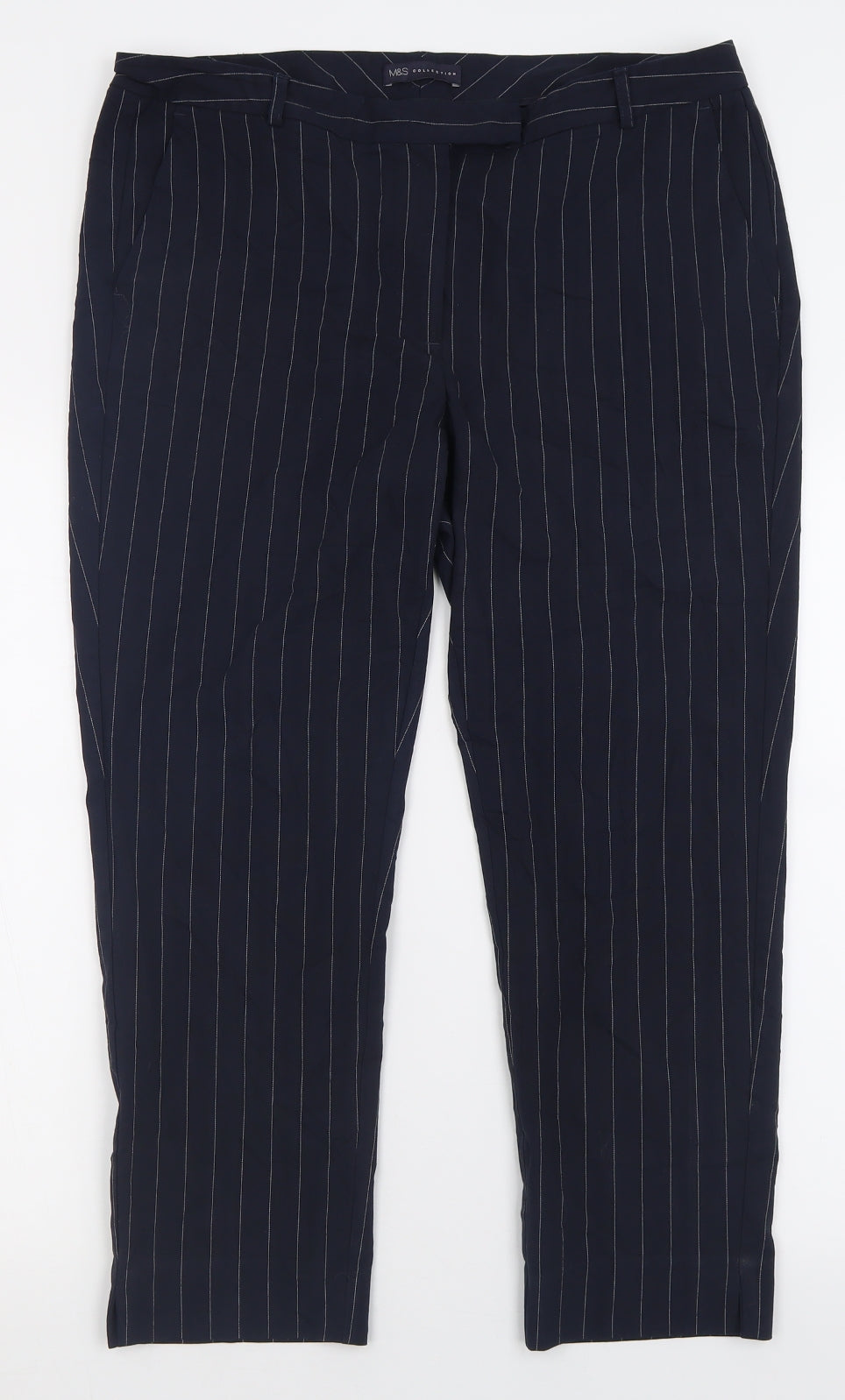 Womens Blue Striped Polyester Trousers Size 16 L25 in Regular Hook & Eye