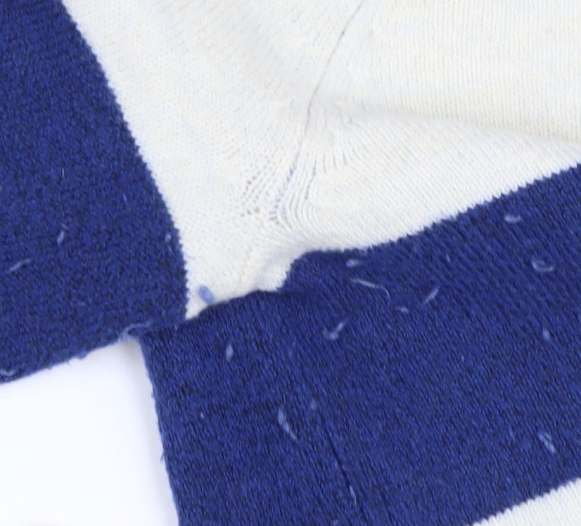 Stay cozy and stylish this season with the Marks and Spencer Women's Blue Striped Pullover. Crafted for comfort and ease, this delightful jumper features a relaxed fit and a classic crew neckline, making it ideal for casual occasions and everyday wear. The bold blue and white stripe pattern adds a touch of timeless elegance that never goes out of style. The raglan sleeve design enhances mobility, while the long sleeves provide ample coverage to keep you warm during autumn and winter months. Made from a blend of polyester, acrylic, elastane, and wool, this knit pullover ensures a soft feel against your skin, alongside durability and stretch for a perfect fit. The fabric is machine washable, guaranteeing convenience in garment maintenance. Although excellent in condition, please note there is some light pilling present, adding to its character. Ideal for pairing with jeans or leggings, this versatile pullover is a wardrobe staple, offering both comfort and style. Don't miss out on this essential piece for your collection.