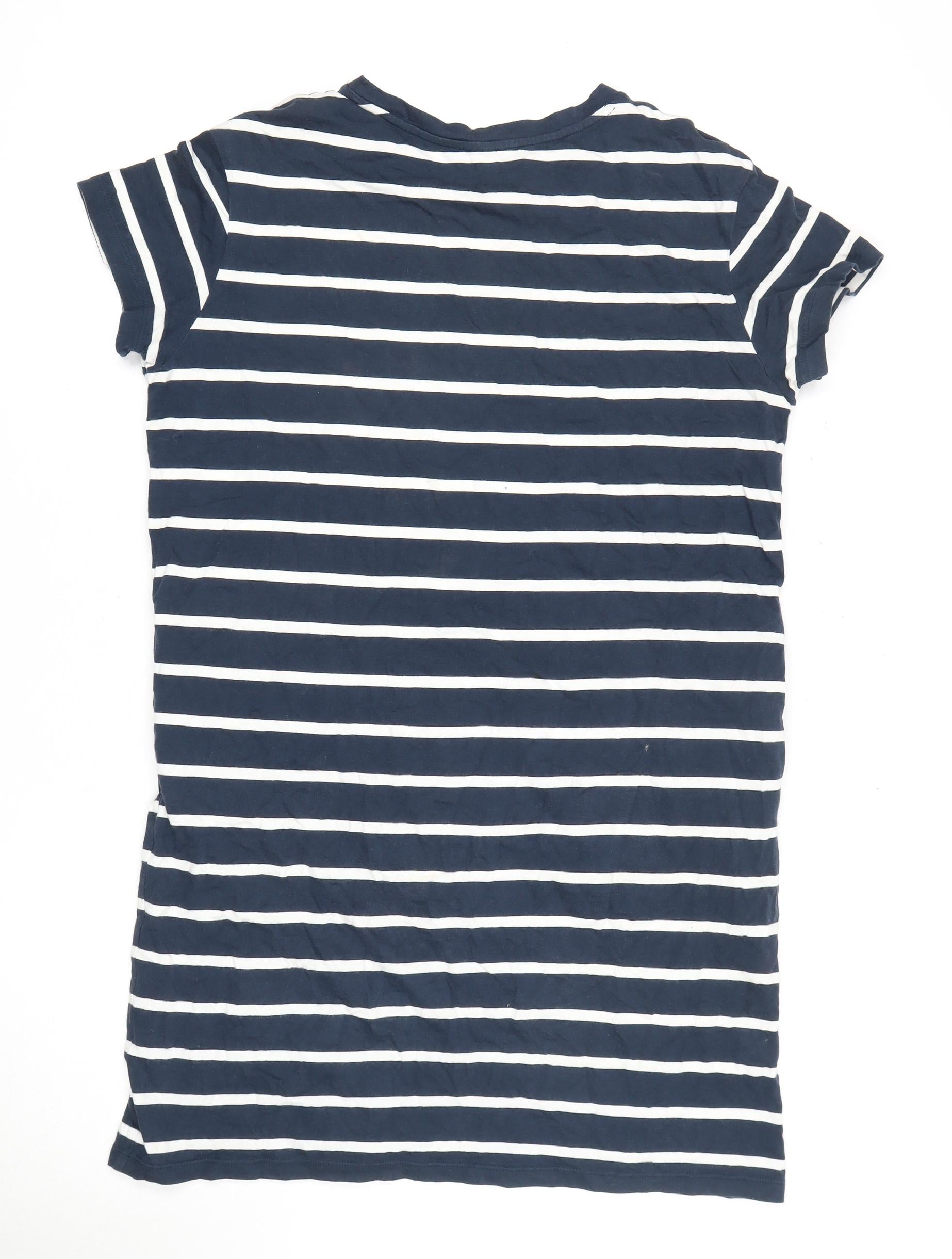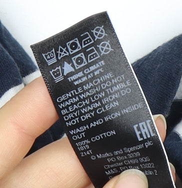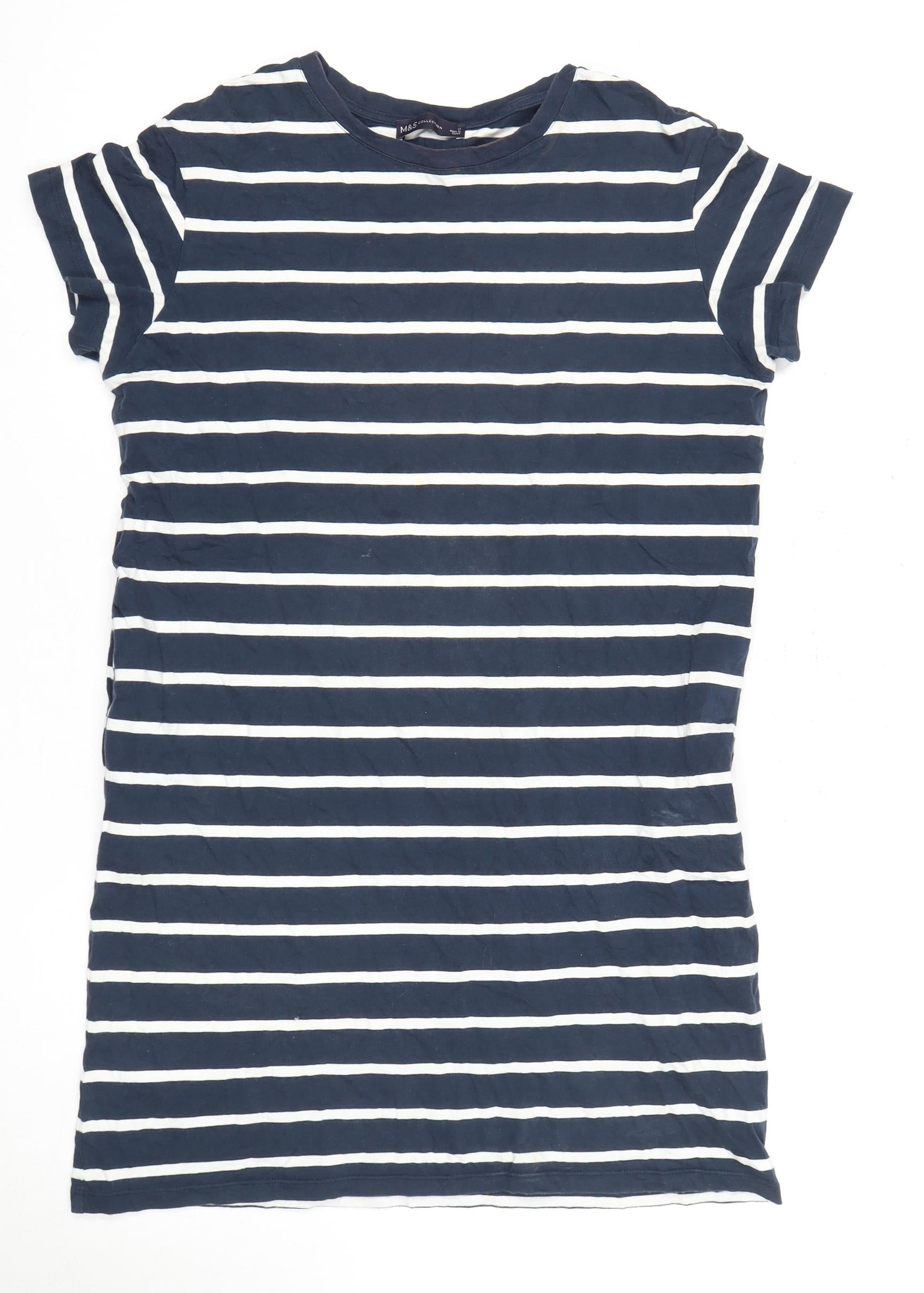 Introducing the versatile and classic Women’s T-Shirt Dress from Marks and Spencer, perfect for your casual wardrobe. This dress, featuring a timeless blue and white striped pattern, brings a subtle nautical theme that's both stylish and easy to wear for the spring and summer seasons. Crafted from premium 100% cotton jersey fabric, it offers utmost comfort with its soft and breathable texture, ensuring you stay cool and chic all day long. Designed with a sleek crew neck and short sleeves, this dress provides a relaxed, pullover fit that makes dressing effortless. Whether you're heading out for a day at the beach, a casual picnic, or a leisurely city stroll, this dress is your go-to choice. With its long length and lightweight material, it drapes beautifully, offering both elegance and ease. Machine washable for convenient garment care, it offers practicality for the modern woman. A hint of elastic in the fabric ensures a comfortable fit for regular sizes, allowing you to move freely while maintaining style. Enhance your collection with this must-have piece – it's simplicity with a hint of sophistication, perfect for adding a touch of class to your everyday ensemble.