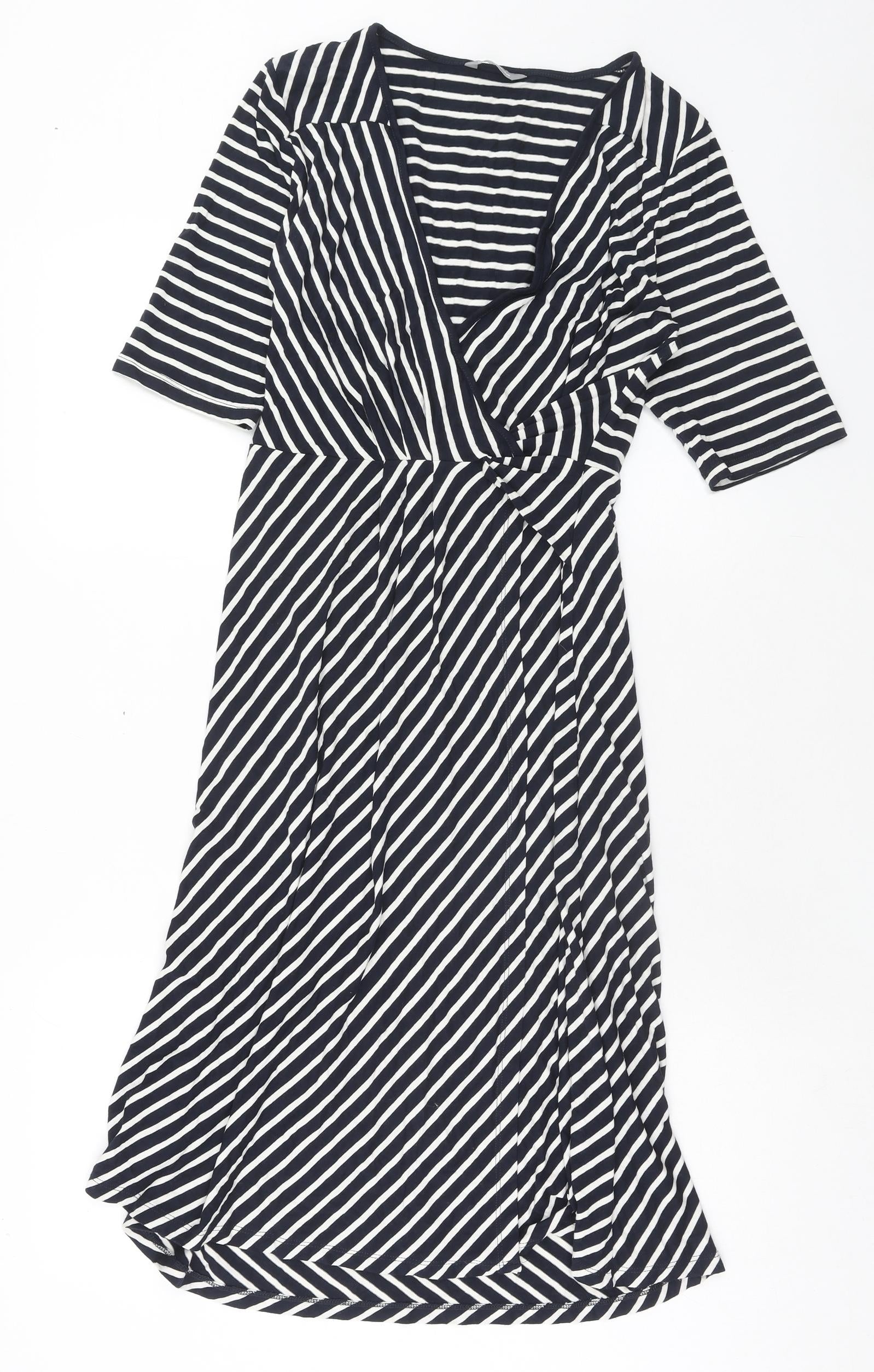 Womens Blue Striped Viscose A-Line Size 14 V-Neck Pullover
