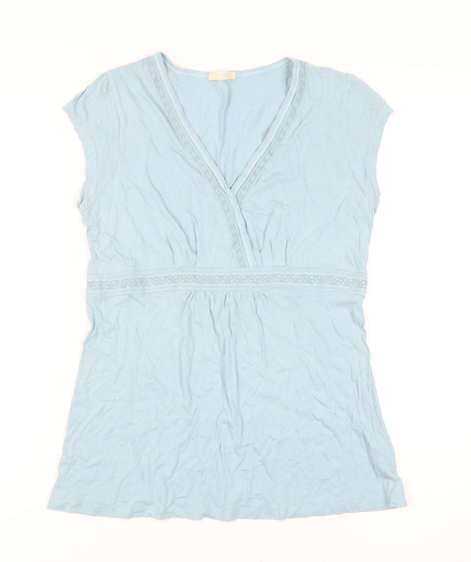 This chic Marks and Spencer blue tunic is the perfect addition to your casual wardrobe. Crafted from a soft blend of 50% cotton and 50% modal, it offers comfort and style for all seasons. The relaxed fit and short cap sleeves provide an effortless, flattering silhouette. Its V-neck design adds a touch of elegance, making it versatile for multiple occasions. Whether you're heading out for a casual lunch or just staying in, this tunic ensures you stay comfortable and stylish. With its solid blue colour and machine washable fabric, it’s both easy to wear and maintain. Elevate your everyday outfit with this timeless piece.