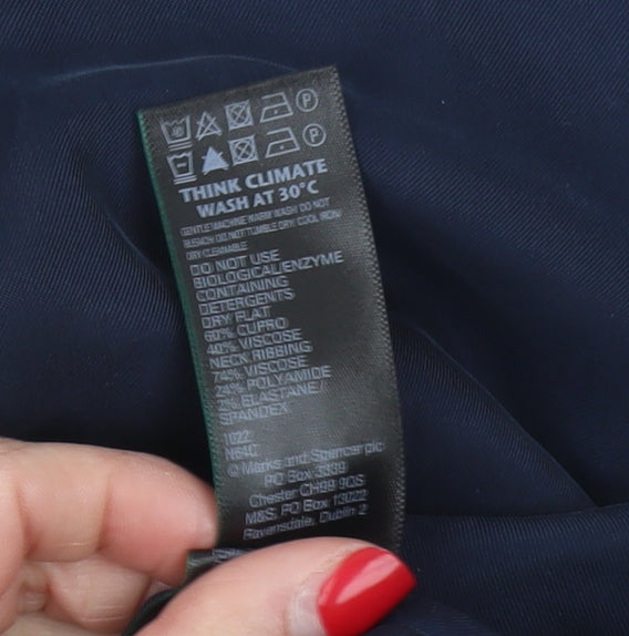 This elegant and versatile Marks and Spencer blouse is an essential addition to any wardrobe. In a sophisticated blue hue, it offers the perfect balance between style and functionality. Designed for women, this short sleeve blouse boasts a streamlined V-neck that adds a touch of modern flair to its classic appeal. The blouse is crafted from a high-quality blend of materials, including cupro, viscose, polyamide, and elastane, ensuring comfort and a perfect fit. With its solid blue colour, this piece is perfect for both business and casual occasions, making it a timeless option for all seasons. The regular fit and classic sleeves enhance mobility and comfort, while the pullover design ensures an easy and hassle-free wear. Ideal for autumn through to spring, this blouse will become a staple piece in your collection. Given its excellent condition with no signs of wear, this piece provides incredible value. Its machine-washable feature adds convenience to its extensive list of attributes, making it a practical choice for the modern woman. Whether paired with tailored trousers for the office or dressed down with jeans for a laid-back look, this Marks and Spencer blouse seamlessly blends elegance with ease.