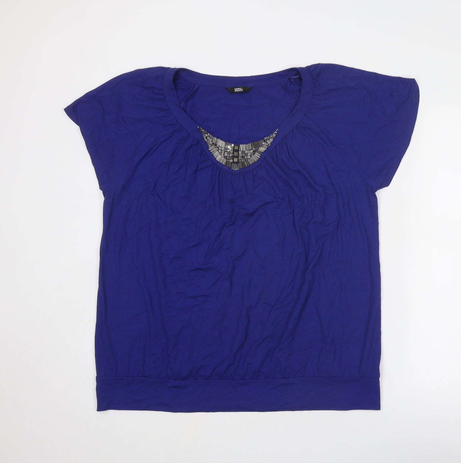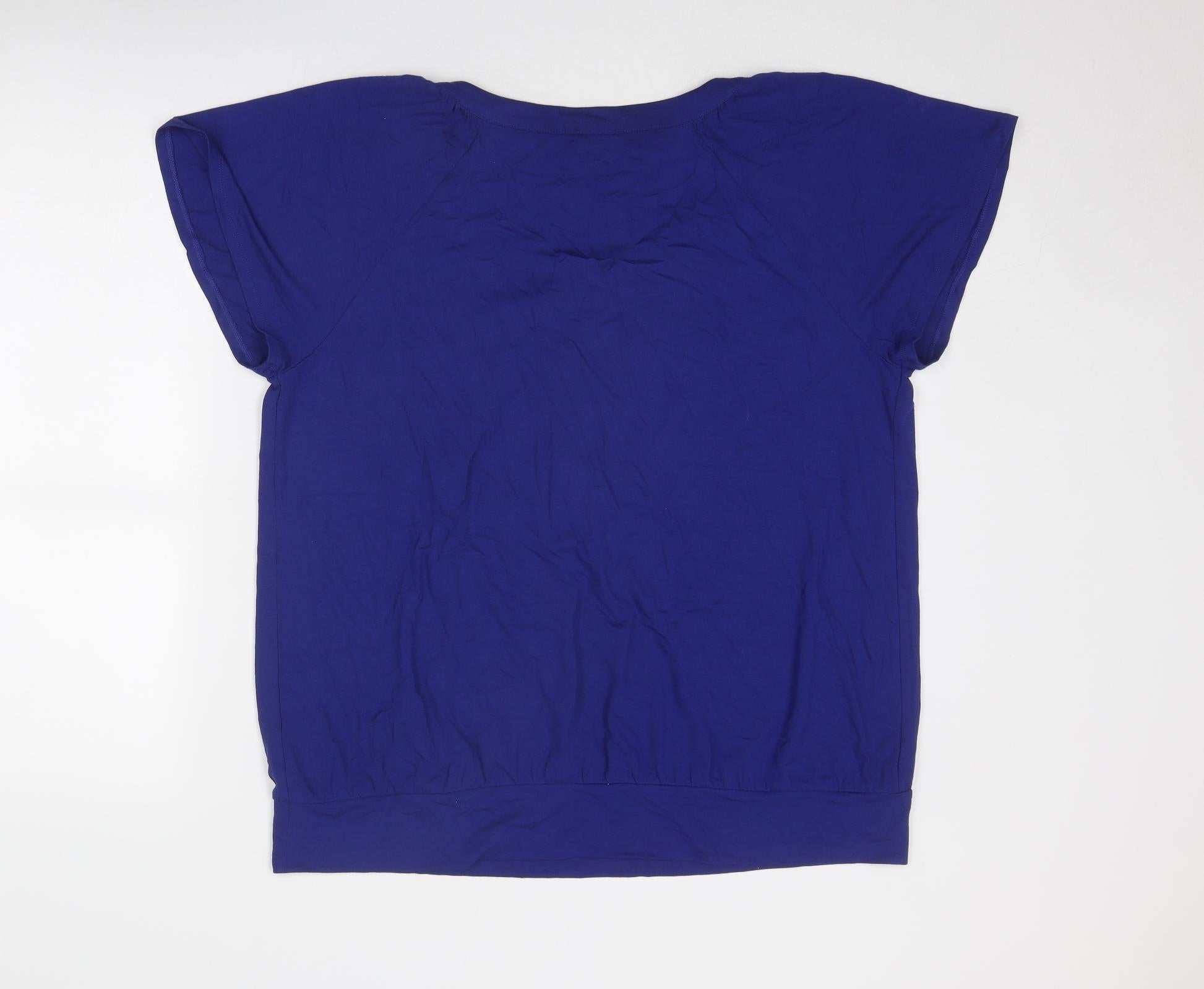 Womens Blue Viscose Basic T-Shirt Size 16 Round Neck