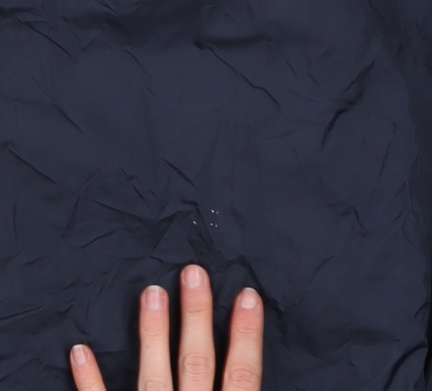 Stay dry and stylish on rainy days with this Marks and Spencer women's waterproof rain jacket. Designed in a sleek navy blue shade, this practical mid-length jacket is perfect for everyday casual wear or travel. Crafted from durable polyamide fabric, it offers reliable weather protection while maintaining a lightweight feel. The jacket features a full zip front for ease of use, practical side pockets to keep your essentials close, and an adjustable fit at the cuffs for comfort. The waterproof and lined design ensures you stay warm and comfortable during unpredictable British weather. Details such as a subtle reflective trim add a functional and modern touch, perfect for outdoor activities or commuting. With its regular fit and classic long sleeve construction, this jacket provides a flattering silhouette and easy layering. Ideal for the autumn, spring, and winter seasons, it can be effortlessly paired with jeans, boots, and cosy knitwear. The jacket’s simple, no-pattern design keeps it timelessly versatile, while the Marks and Spencer quality guarantees durability for seasons to come. A practical choice for women who appreciate a balance of comfort, protection, and understated style. This gently used piece remains in very good condition, showing only minimal wear with small marks on the back that do not detract from its overall appearance or functionality. A dependable wardrobe essential, it’s a great choice for brisk walks, weekend outings, or everyday errands when staying dry is a must. Perfect for those seeking classic design and practicality in one outerwear piece.
