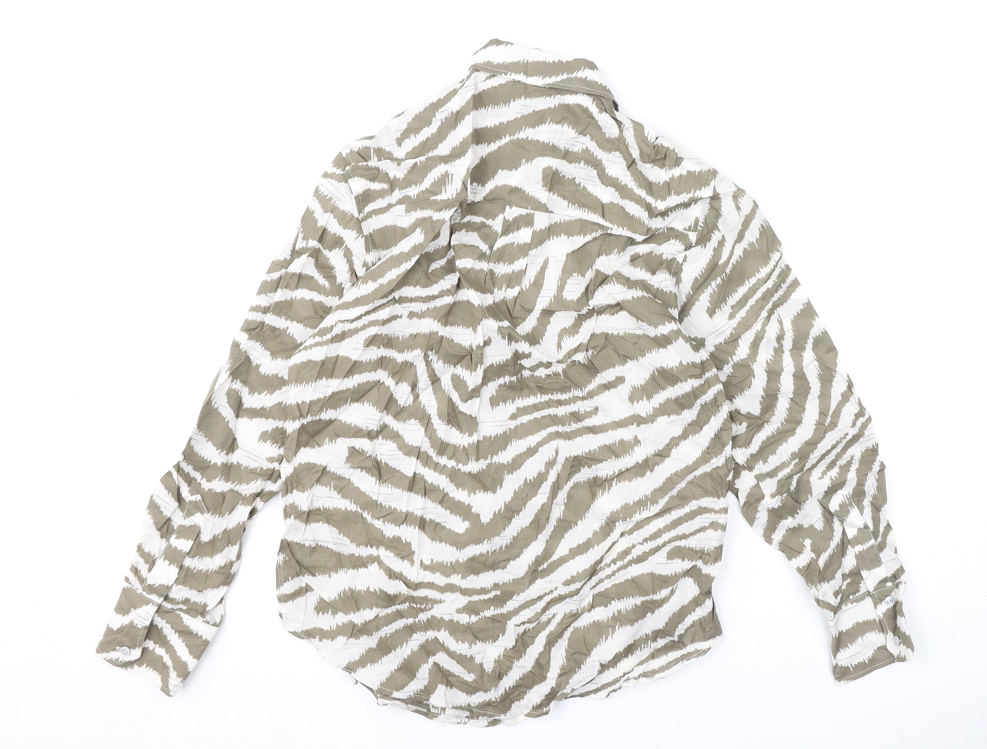 Womens Brown Animal Print 100% Cotton Basic Button-Up Size 6 Collared - Tiger Print