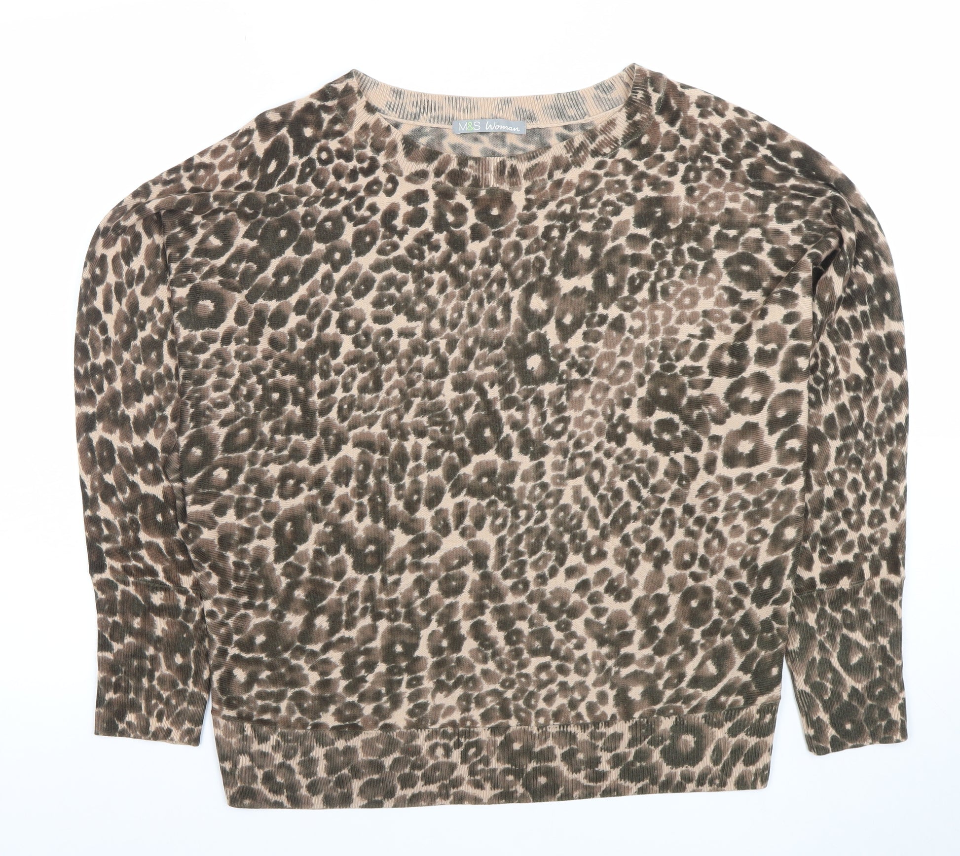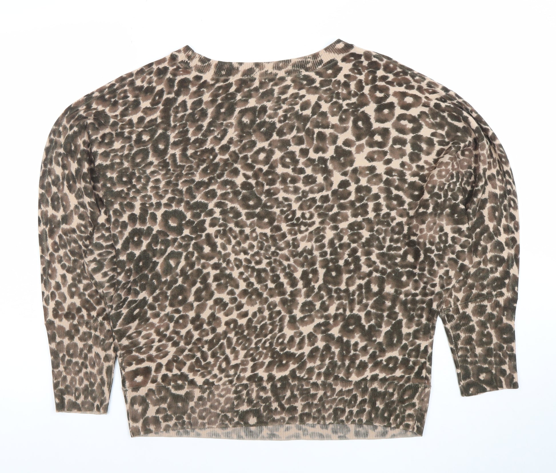 Womens Brown Animal Print Long Sleeve Knit Top UK 14