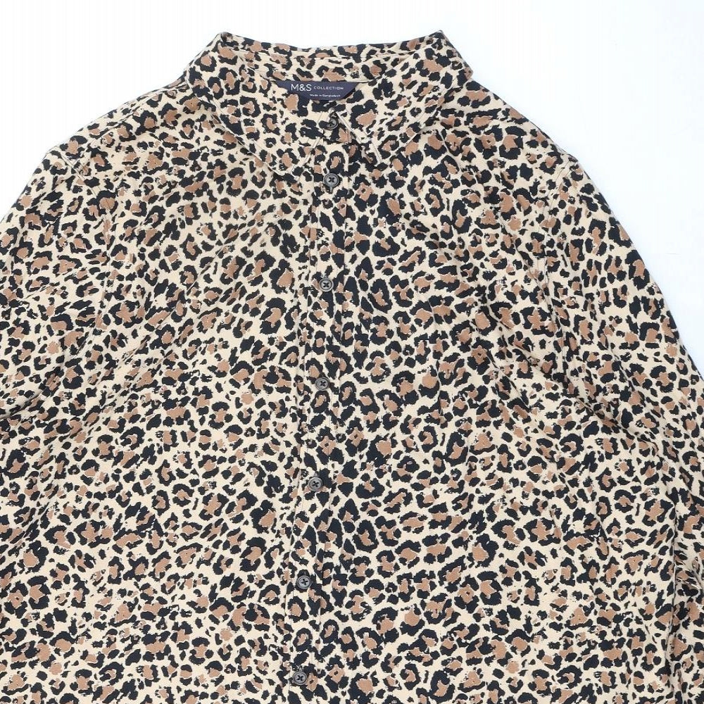 Womens Brown Animal Print Viscose Basic Button-Up Size 14 Collared - Leopard Print