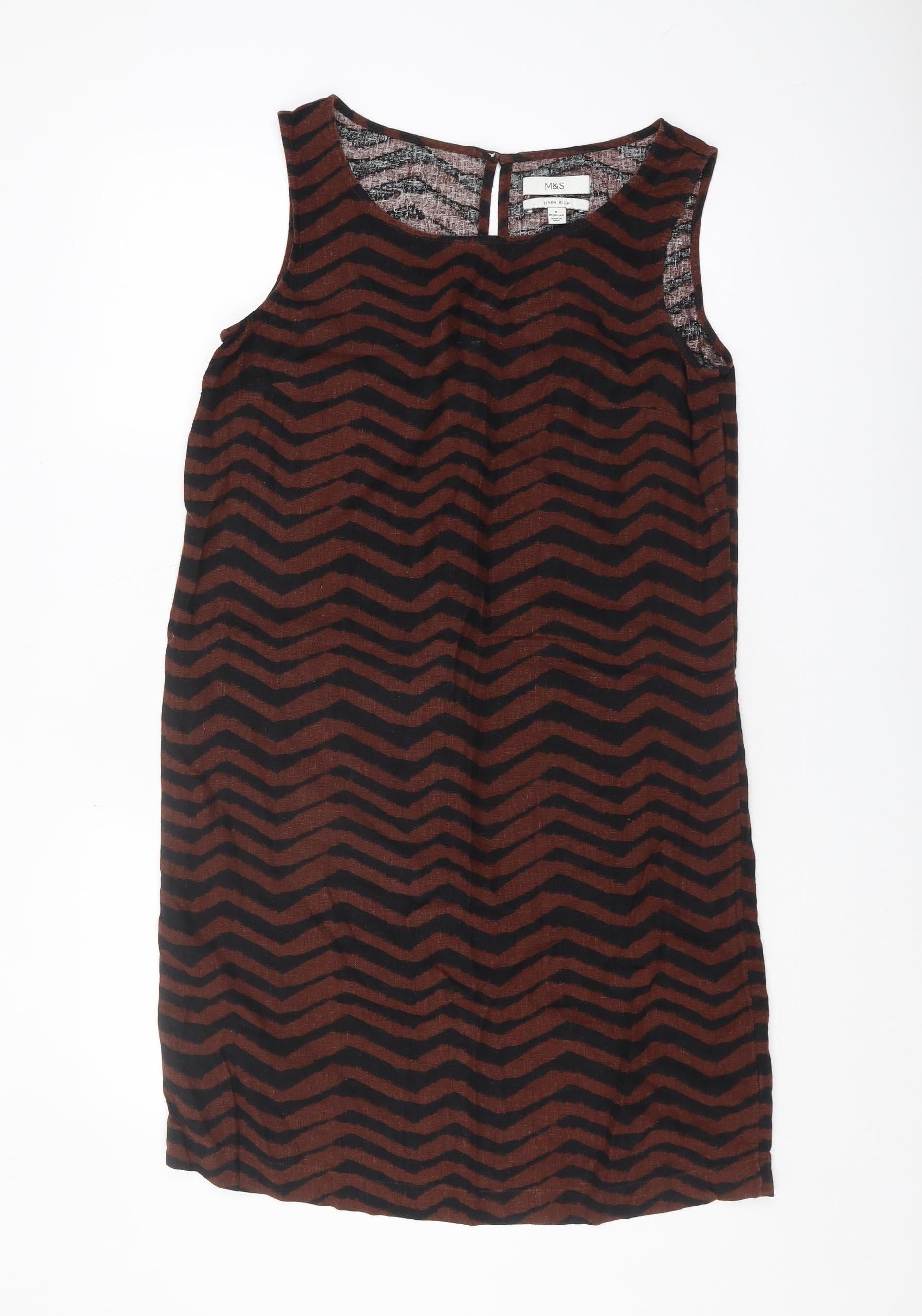 Discover this exquisite chevron shift dress from Marks and Spencer, designed for the modern woman who values both style and comfort. In a rich brown hue, this dress is crafted from a soft blend of linen and viscose, ensuring a lightweight and breathable experience. The sleeveless design features a flattering round neckline and a classic shift style, making it a versatile addition to your wardrobe. Perfect for casual outings or relaxed gatherings, pair it with your favorite accessories for a chic, effortless look. Machine washable for easy care, this dress offers a combination of fashion and practicality.