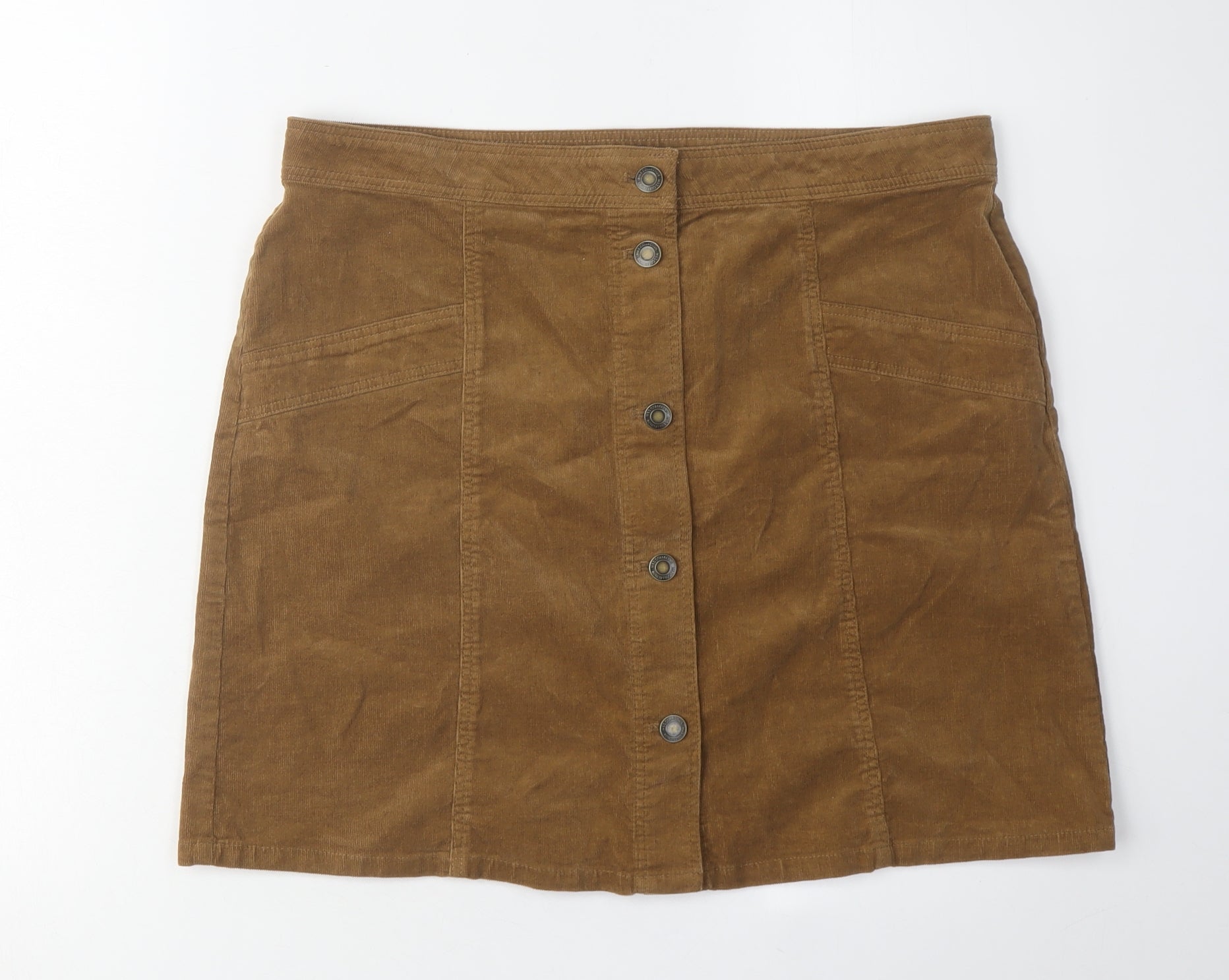Discover timeless style with this Marks and Spencer women's skirt, perfect for enhancing your casual wardrobe. Crafted from plush corduroy in a warm brown hue, this skirt exudes both comfort and sophistication. Designed for women, it comes in a versatile size 14, ensuring a flattering fit. The mid-rise design complements your silhouette, while the skirt's regular size type offers universal appeal.Featuring a classic button closure, the skirt stands out with its attention to detail, allowing for ease of wear and a touch of refinement. The sturdy cotton and elastane blend ensures durability and a touch of stretch, making this skirt a practical choice for everyday wear. Machine washable, this piece is designed for easy care, fitting seamlessly into your lifestyle.This unpatterned skirt, accented with buttons, embraces simplicity and style, effortlessly pairing with a variety of tops for versatile outfit options. The addition of pockets not only elevates its practicality but also adds a modern twist to its casual charm.Ideal for any season, the skirt offers all-year-round wearability, making it a smart addition to any wardrobe. Though gently worn, it remains in excellent condition, retaining its original appeal and quality. Whether you're heading to the office or enjoying a weekend outing, this skirt is a chic, comfortable choice. Priced affordably, it offers fantastic value without compromising on style. Elevate your wardrobe with this fashion-forward piece, designed to leave a lasting impression with every wear.