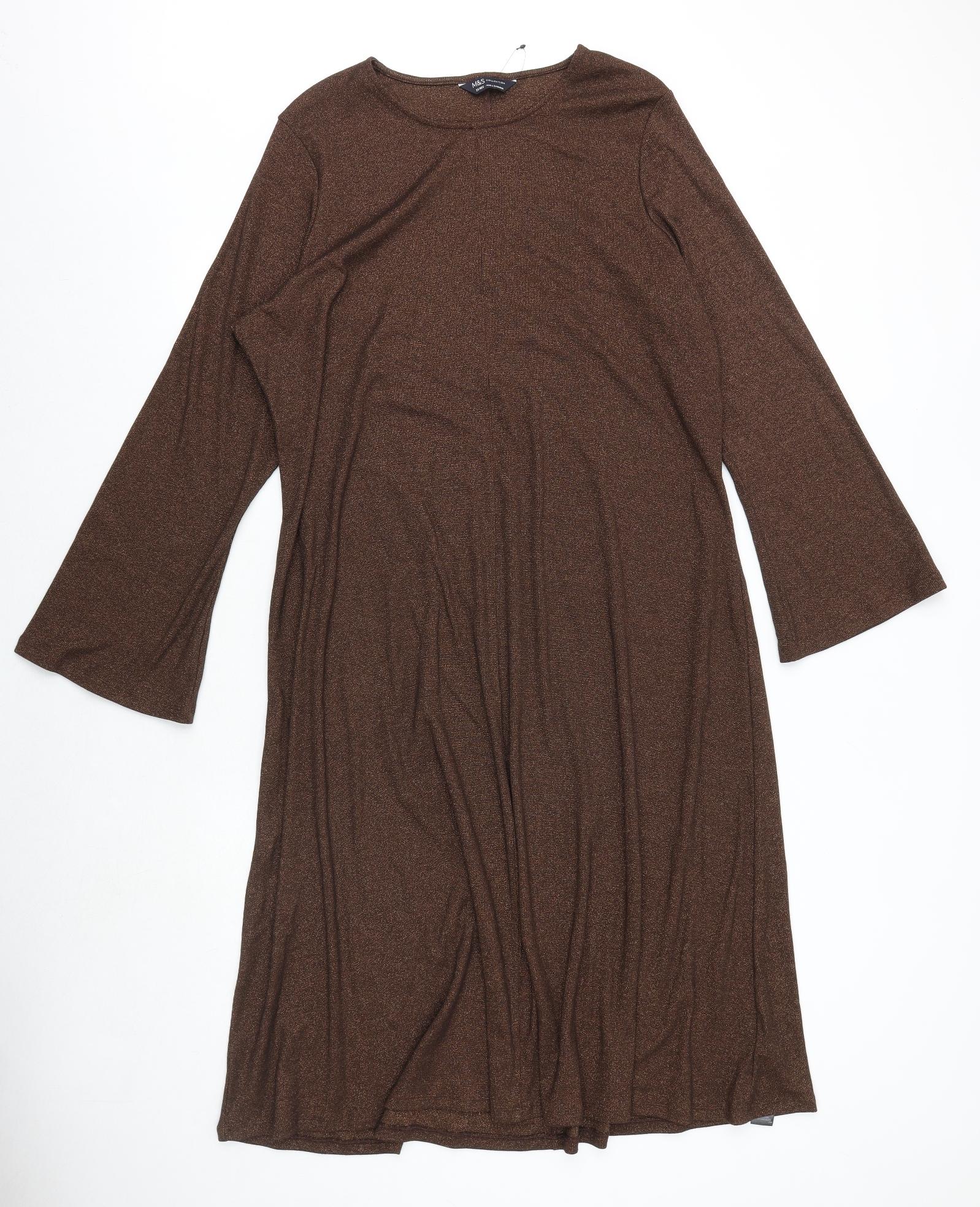 Womens Brown Cotton A-Line Size 20 Boat Neck Pullover