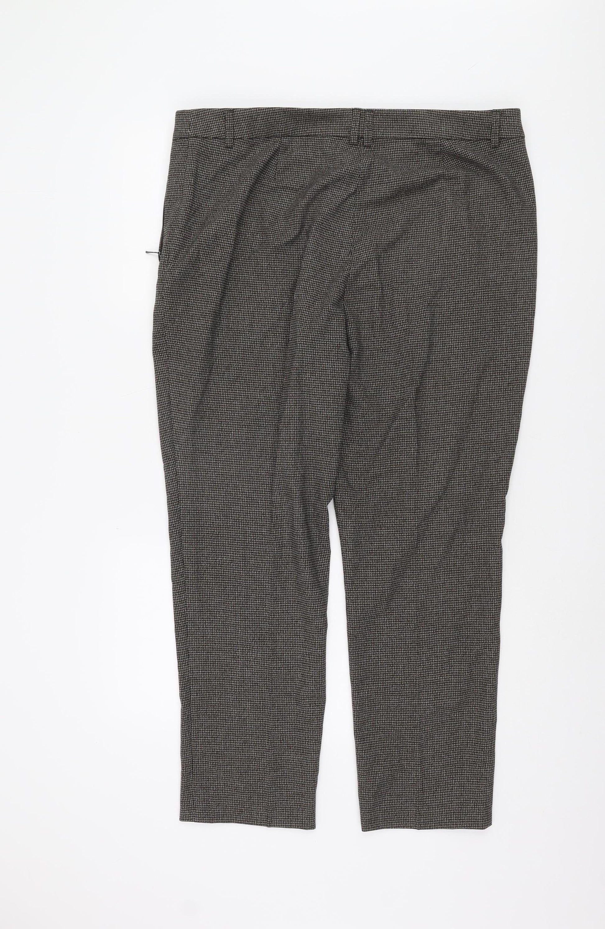 Elevate your wardrobe with these sophisticated Marks and Spencer Women's Brown Dress Pants, perfect for any formal or business occasion. Designed in a delightful brown hue with a classic houndstooth pattern, these trousers bring a touch of elegance and versatility to your ensemble. Crafted from a high-quality blend of materials, including 68% polyester, 29% viscose, and 3% elastane, they offer a comfortable fit with a slight stretch that ensures ease of movement throughout the day. The trousers feature a flat front design, enhancing a sleek silhouette, making them an excellent choice for pairing with blouses or tailored jackets. With a regular fit, these trousers are designed for women who appreciate style and comfort, offering a flattering cut that complements any figure. These dress pants are suitable for various occasions, particularly ideal for business settings where a polished look is essential. They are machine washable, making them easy to care for, while ensuring long-lasting wear and colour retention. Although these trousers are in excellent condition with no visible flaws, they provide the appearance and feel of a brand new item, ensuring you always look your best. Embrace sophistication and timeless style with these Marks and Spencer Dress Pants, an indispensable staple for your wardrobe.