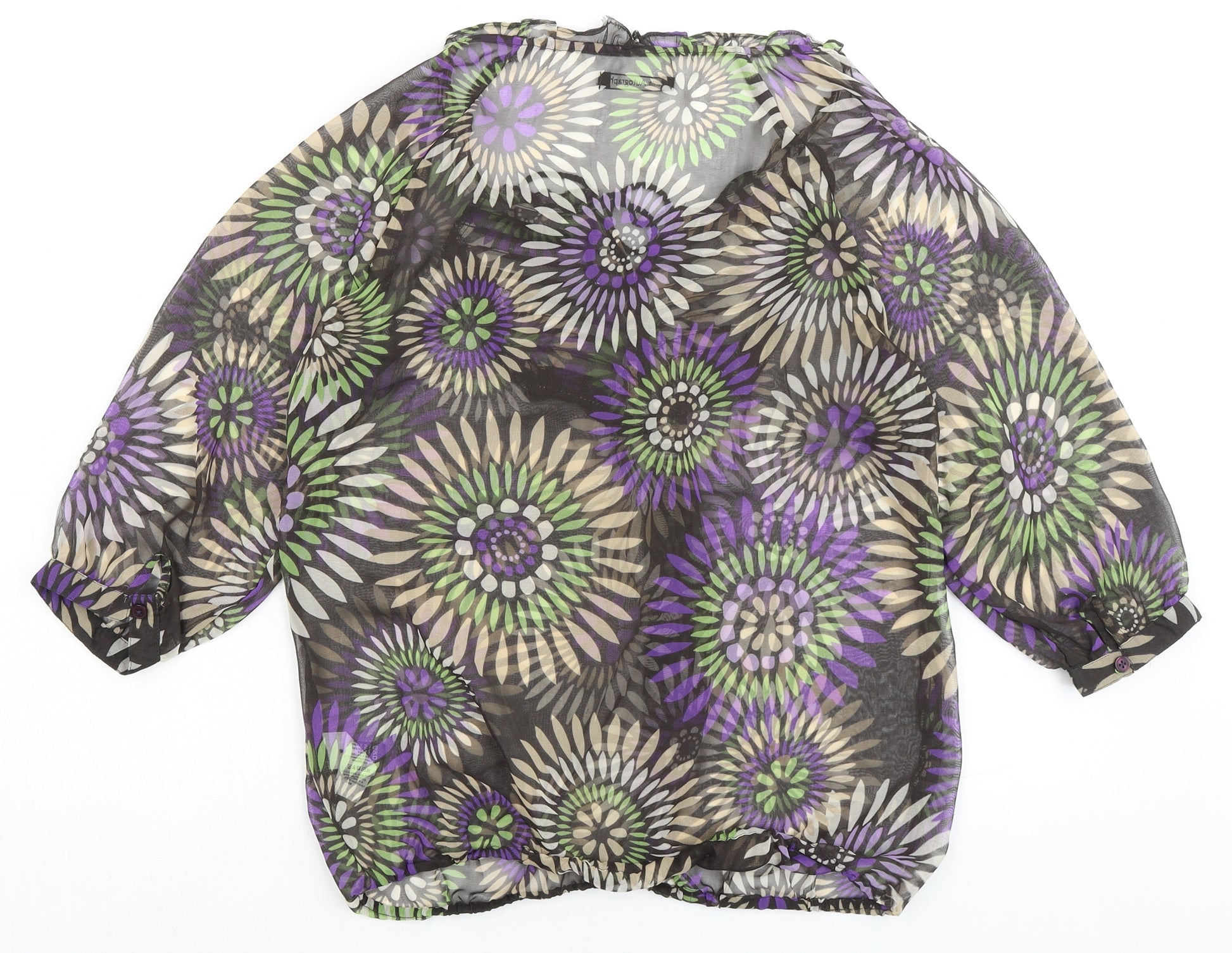 Womens Brown Floral Polyester Basic Blouse Size 12 Round Neck - Sheer