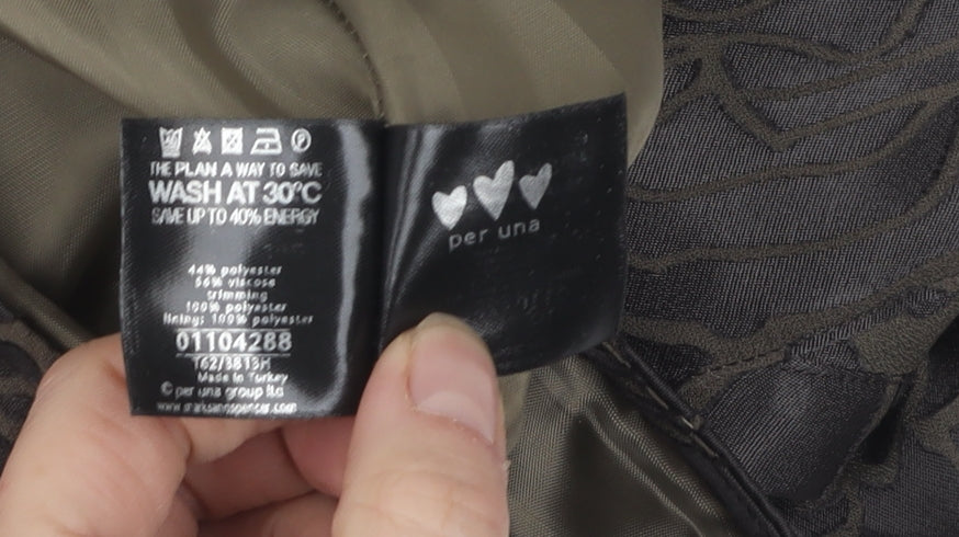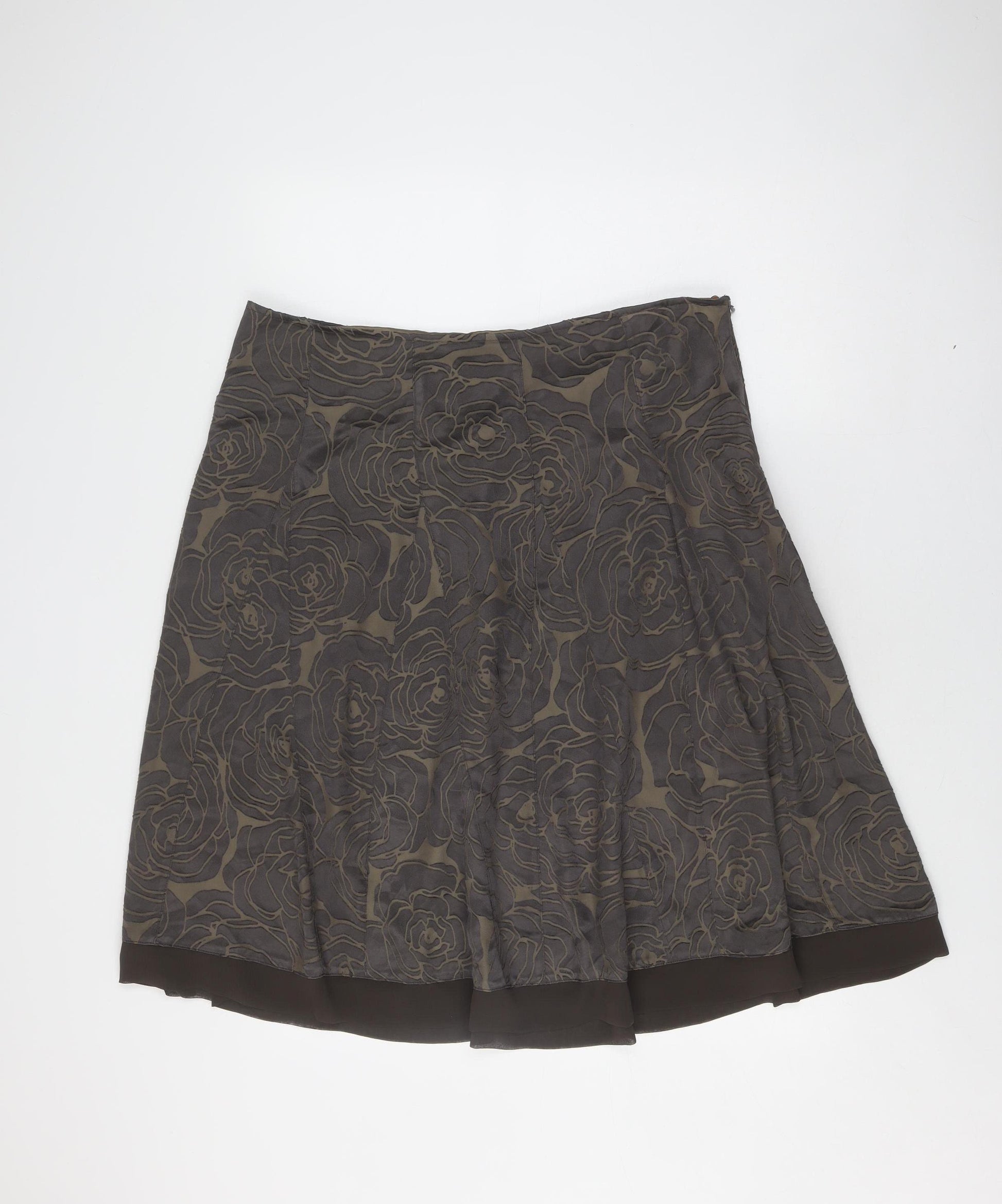 Discover elegance and comfort with this Marks and Spencer Women's Brown Floral Skirt. Designed for the modern woman, this knee-length pleated skirt boasts a beautiful floral pattern, making it a perfect choice for casual outings and autumn occasions. Crafted from a blend of polyester and viscose, the skirt promises durability and a comfortable fit. The exquisite brown shade complements a variety of tops and accessories. Featuring a zip closure, this skirt ensures ease of wear. Its regular size type makes it suitable for many body types. Despite being pre-owned, the skirt is in excellent condition, maintaining its charm and appeal. Priced affordably, this Marks and Spencer skirt offers great value, blending quality with style. Machine washable for your convenience, this skirt is a versatile addition to your wardrobe. Whether you're heading to a casual meet-up or exploring the city, this skirt will keep you looking chic and comfortable.