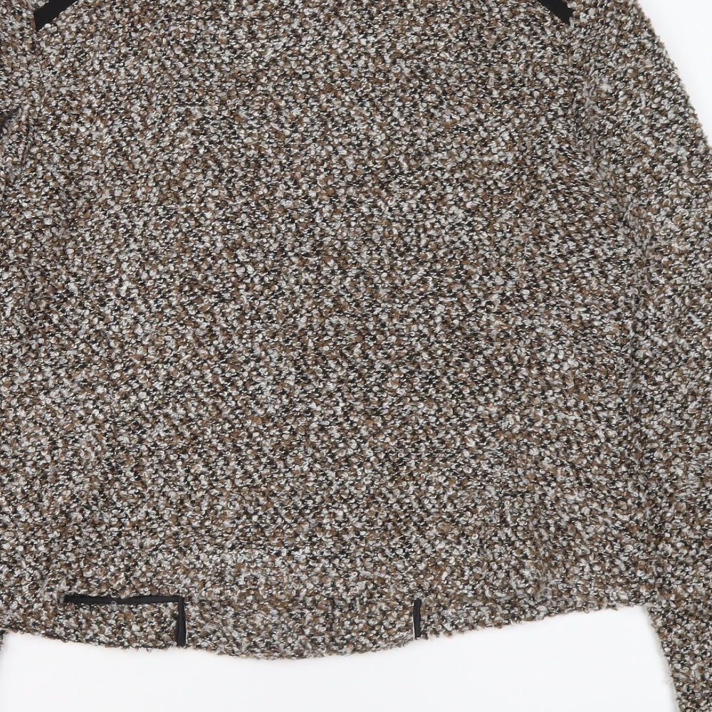 Womens Brown Geometric Biker Jacket Size 12 Zip