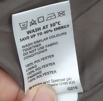 Embrace the chill with this classic quilted jacket from Marks and Spencer, perfect for keeping warm during autumn and winter. Designed specifically for women, this brown mid-length jacket combines practicality with elegance. Made from durable polyester, it features a luxurious quilted design, adding a layer of insulation to protect you from cold winds. The jacket's interior is lined with polyester, ensuring comfort without compromising on style. Its thoughtful design includes collared necklines and multiple pockets with secured zips to keep your essentials safe. The versatile closure combines both button and zip, enhancing your overall style statement, whether you're heading to a casual outing or taking a cozy stroll. This jacket is machine washable, ideal for effortless maintenance. Marked as a size 18 in regular fit, it is tailored to deliver a classic yet comfortable silhouette. Whether you’re dressing up for a weekend getaway or a relaxed day out, this jacket is your go-to choice for seasonal fashion.