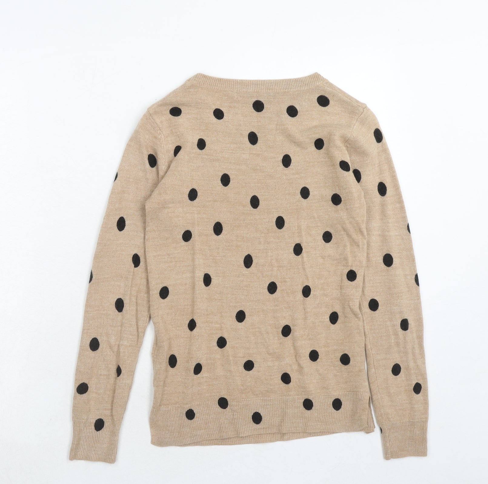 Womens Brown Round Neck Polka Dot Acrylic Pullover Jumper Size XS