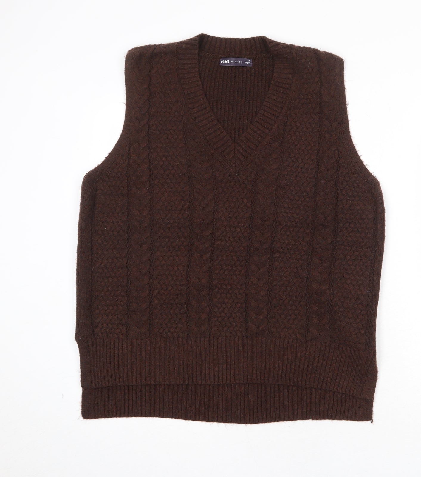 Womens Brown V-Neck Polyester Vest Jumper Size L