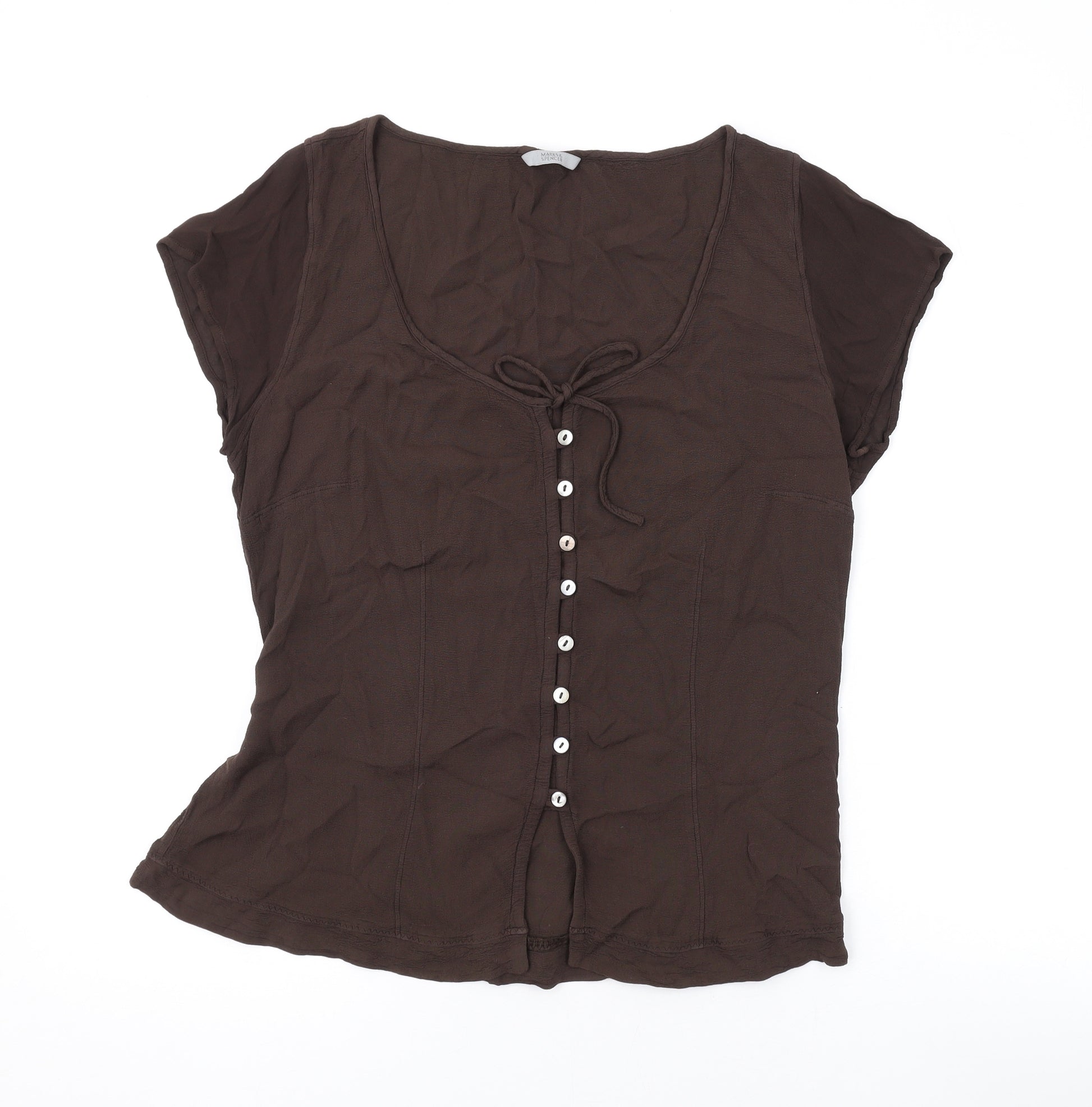 Womens Brown Viscose Basic Blouse Size 16 Scoop Neck