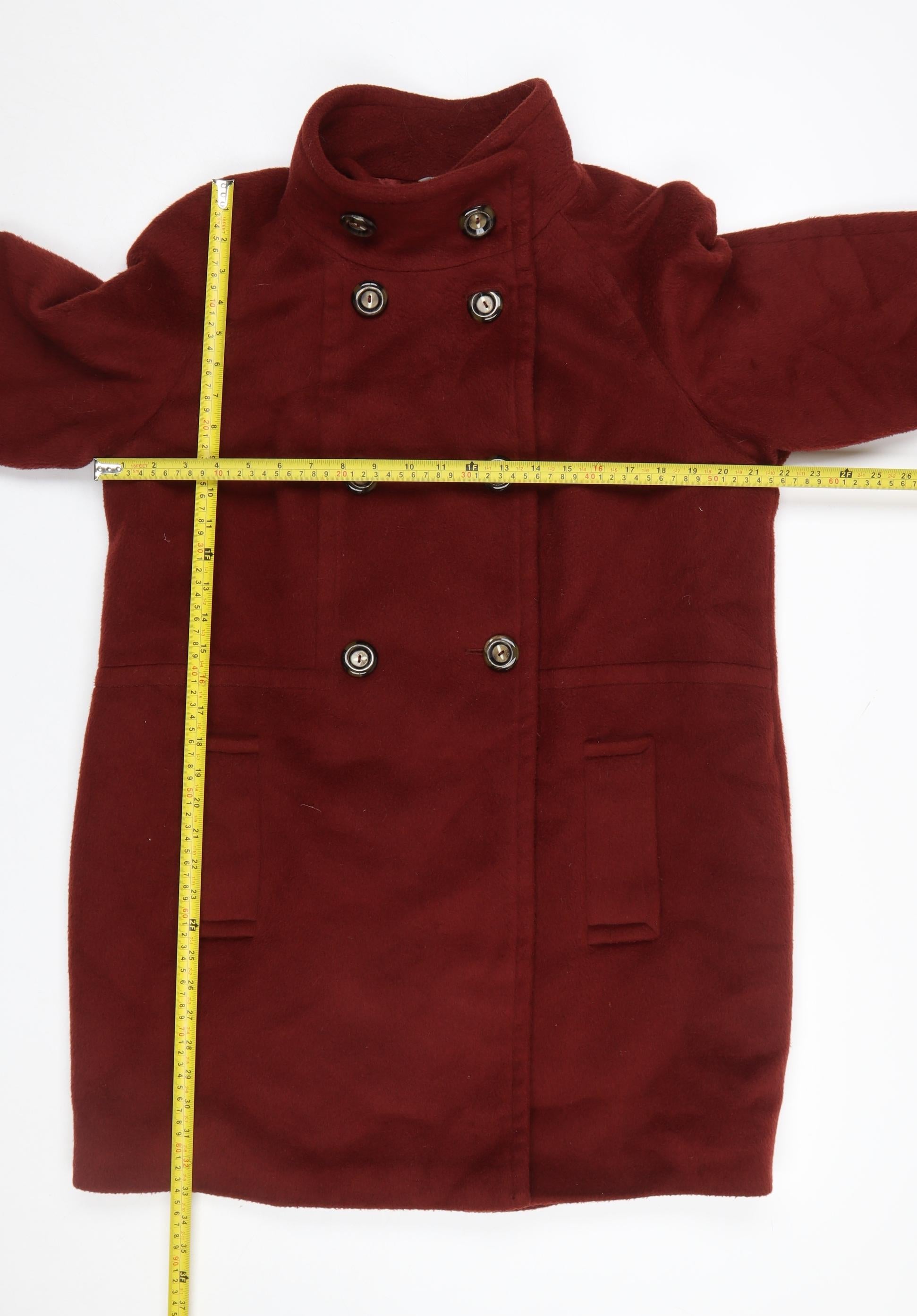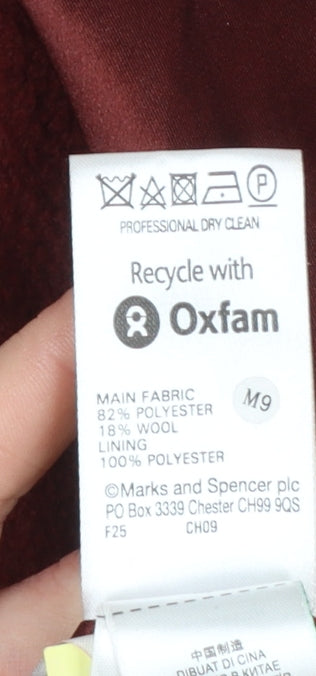 Wrap yourself in timeless sophistication with this elegant Marks and Spencer women's pea coat in a warm cognac brown shade. Expertly tailored to a regular fit, this coat is both stylish and practical, making it an ideal choice for everyday wear or smart occasions. Crafted from a luxurious blend of 82% polyester and 18% wool, it offers a soft yet durable feel that keeps you comfortably warm during the cooler months of autumn and winter. The fully lined interior, made from 100% polyester, ensures a smooth silhouette while adding extra comfort. This mid-length design features a refined double-breasted button fastening and two front pockets for functionality. The structured high neck and long sleeves provide additional coverage against chilly winds, while the clean, seam-detailed back adds a polished finish to your look. Perfect for both casual outings and workwear, this coat pairs beautifully with tailored trousers, jeans or dresses. With its classic cut and minimalist design, the Marks and Spencer pea coat remains a versatile wardrobe essential. It combines the enduring appeal of wool with the low-maintenance benefits of polyester, requiring only professional dry cleaning for care. In excellent pre-loved condition with only very light signs of wear, this coat has been well maintained and shows no visible flaws. A smart investment piece that effortlessly elevates your outerwear collection while providing warmth, comfort, and sophistication throughout the colder seasons.