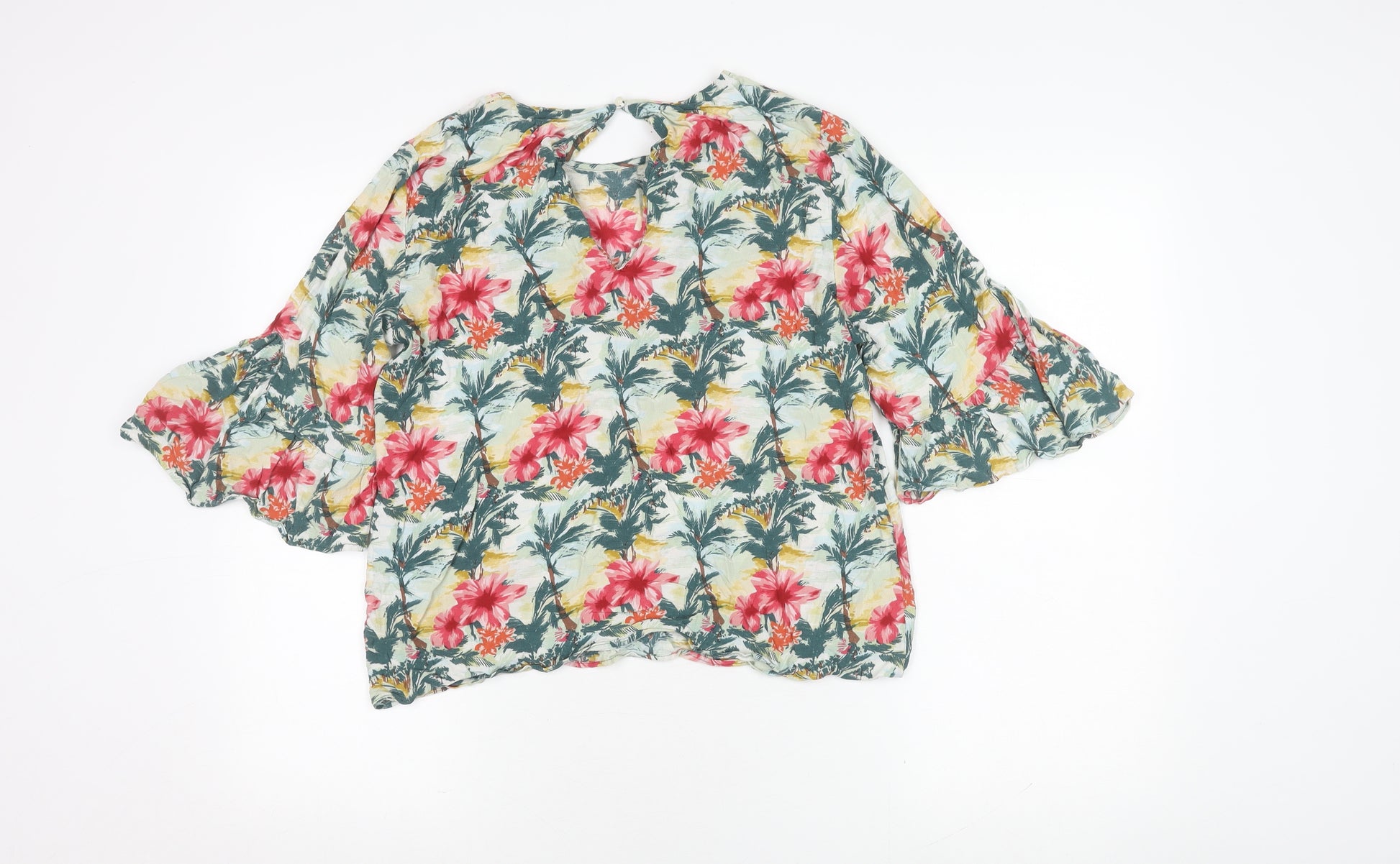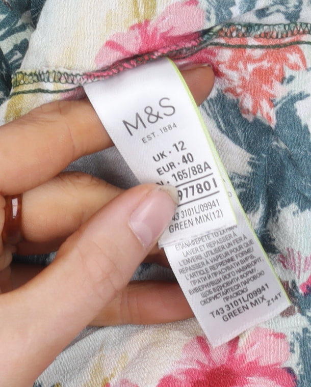 Elevate your wardrobe with this stunning Marks and Spencer women's blouse, perfect for adding a splash of colour to your outfit. Crafted from 100% Viscose, this multicoloured floral blouse promises comfort and breathability, making it an excellent choice for both spring and summer seasons. The gentle texture and vibrant floral pattern ensure you'll feel as fabulous as you look. The blouse features stylish flared sleeves that add a touch of flair to a casual outing or a day at the office. The quality of Marks and Spencer shines through in every stitch, ensuring durability and comfort. Whether paired with jeans for a relaxed look or a smart skirt for something more formal, this blouse offers ultimate versatility. Please note that it is in excellent condition, showing only gentle wear, with no visible signs of damage. Update your collection with this chic piece and enjoy its timeless appeal.