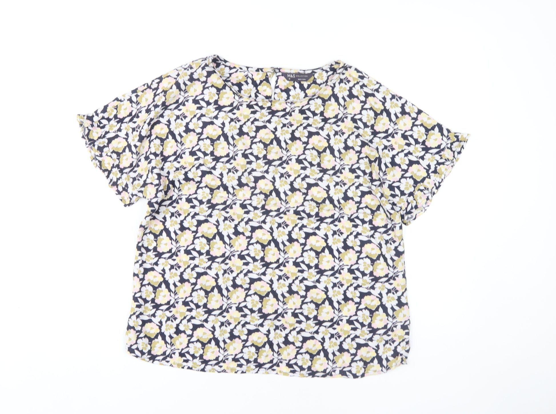 Discover the elegance and comfort of this Marks and Spencer Women's Floral Blouse, perfectly crafted for your casual stylish outings. This blouse features a delightful multicoloured floral print that adds a touch of femininity and charm to your wardrobe. Made from 100% viscose, it ensures lightweight comfort, making it ideal for warmer days or layering under jackets. The blouse comes in a regular size 10, fitting most body types comfortably with a regular fit. Designed with short sleeves, it offers ease of movement and breathability. The round neck design provides a classic, timeless appeal. Notably, the blouse is machine washable, making it easy to care for and maintain its vibrant colours over time. Crafted with attention to detail, this blouse is great for casual occasions, whether you're meeting friends or enjoying a relaxed day out. The floral pattern brings a fresh, natural vibe, while the button closure at the back adds a touch of sophistication. Although in excellent used condition, it shows no visible defects, assuring quality and longevity. Add this versatile piece to your collection for an effortless seasonal style that aligns with the unique themes of spring and summer adventures. This blouse is more than just an outfit; it's a statement of elegance and comfort, making it a must-have for every stylish woman's closet.