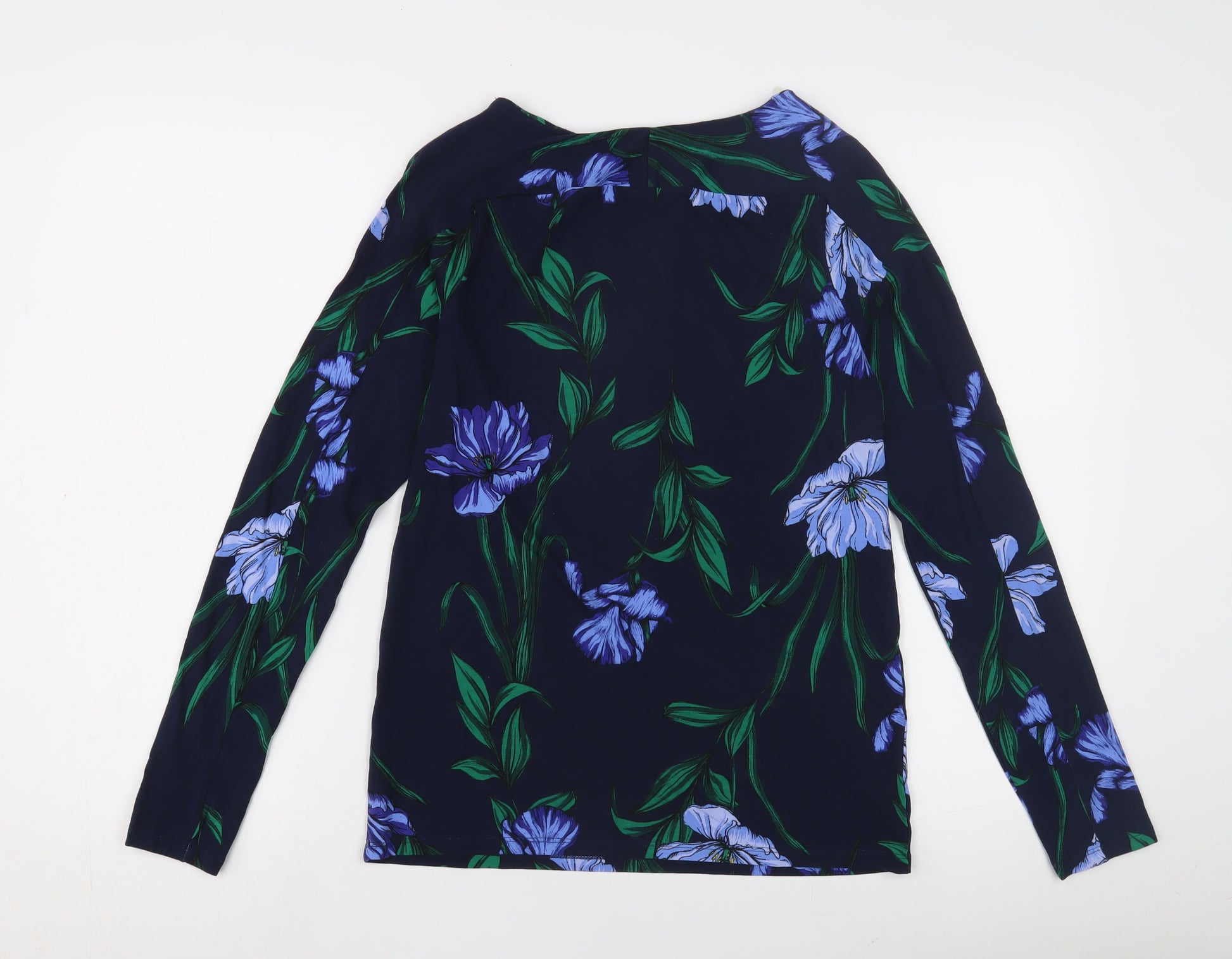 Elevate your wardrobe with this stunning Marks and Spencer Women's Floral Blouse. Perfect for any occasion, this blouse combines style and comfort, making it an essential addition to your collection. The eye-catching multicoloured floral pattern stands out beautifully against the deep navy backdrop, offering a vibrant yet sophisticated look. Crafted from 100% polyester, it provides a smooth and comfortable fit while being easy to care for with its machine-washable feature. The blouse showcases long sleeves, perfect for transitional weather, and a chic boat neckline, adding an elegant touch to the overall design. Its regular fit ensures ease of movement and comfort throughout the day. Whether you're dressing up for a special occasion or simply want to enhance your everyday ensemble, this blouse is the perfect choice. Pair it with your favourite jeans for a casual look or elevate it with a skirt and heels for a night out. Don't miss the opportunity to own this versatile and stylish blouse from Marks and Spencer, known for their quality and timeless designs. Experience the perfect blend of fashion and practicality with this fabulous floral piece.