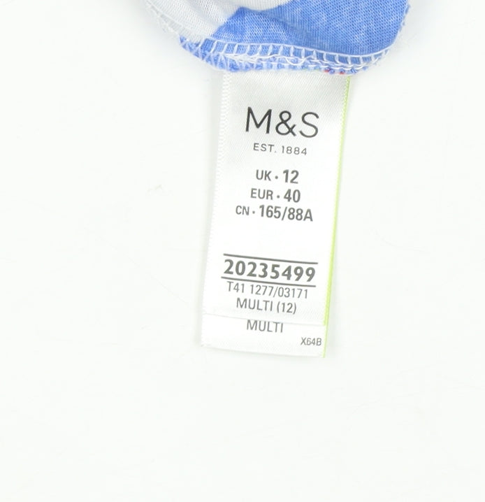 Marks and Spencer Women’s Blue Geometric Cotton T-Shirt Size 12