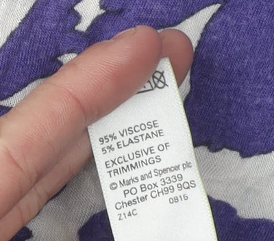 Explore casual elegance with this exquisite Marks and Spencer floral T-shirt, tailored for the modern woman. Showcasing a vibrant multicoloured floral pattern that exudes effortless style, this T-shirt is perfect for adding a fresh touch to your wardrobe. Designed in a comfortable regular size 14, it ensures a flattering fit for various body types.Crafted from a soft jersey fabric, this top is made from a quality blend of 95% viscose and 5% elastane, offering a smooth and flexible wear that adapts to your movements with ease. The short sleeves and classic crew neckline provide a timeless silhouette, making it an ideal choice for everyday casual occasions or relaxed outings with friends.Whether paired with jeans for a laid-back look or layered under a jacket for a touch of sophistication, this T-shirt's versatility makes it a valuable addition to any fashion-conscious collection. Easy to care for, it is machine washable, ensuring hassle-free maintenance.Ideal for a relaxed weekend or a cheerful outdoor gathering, this Marks and Spencer T-shirt embodies the perfect blend of comfort, style, and practicality. Elevate your ensemble with this charming piece and enjoy its seamless fusion of classic design and vibrant floral motifs.