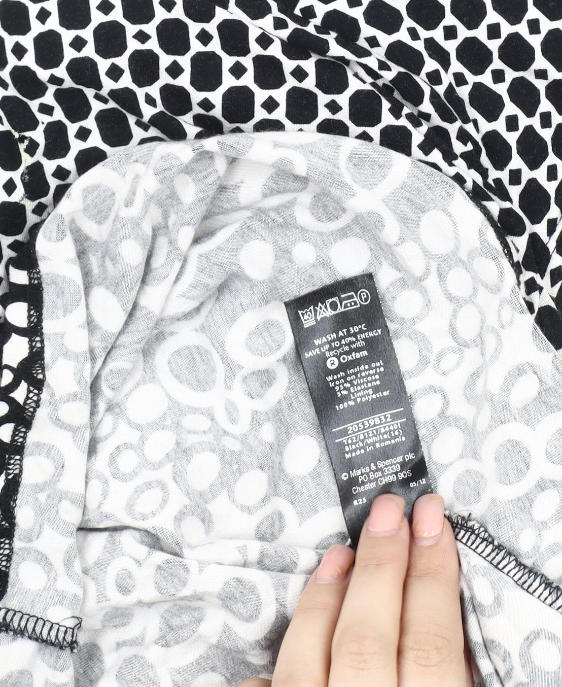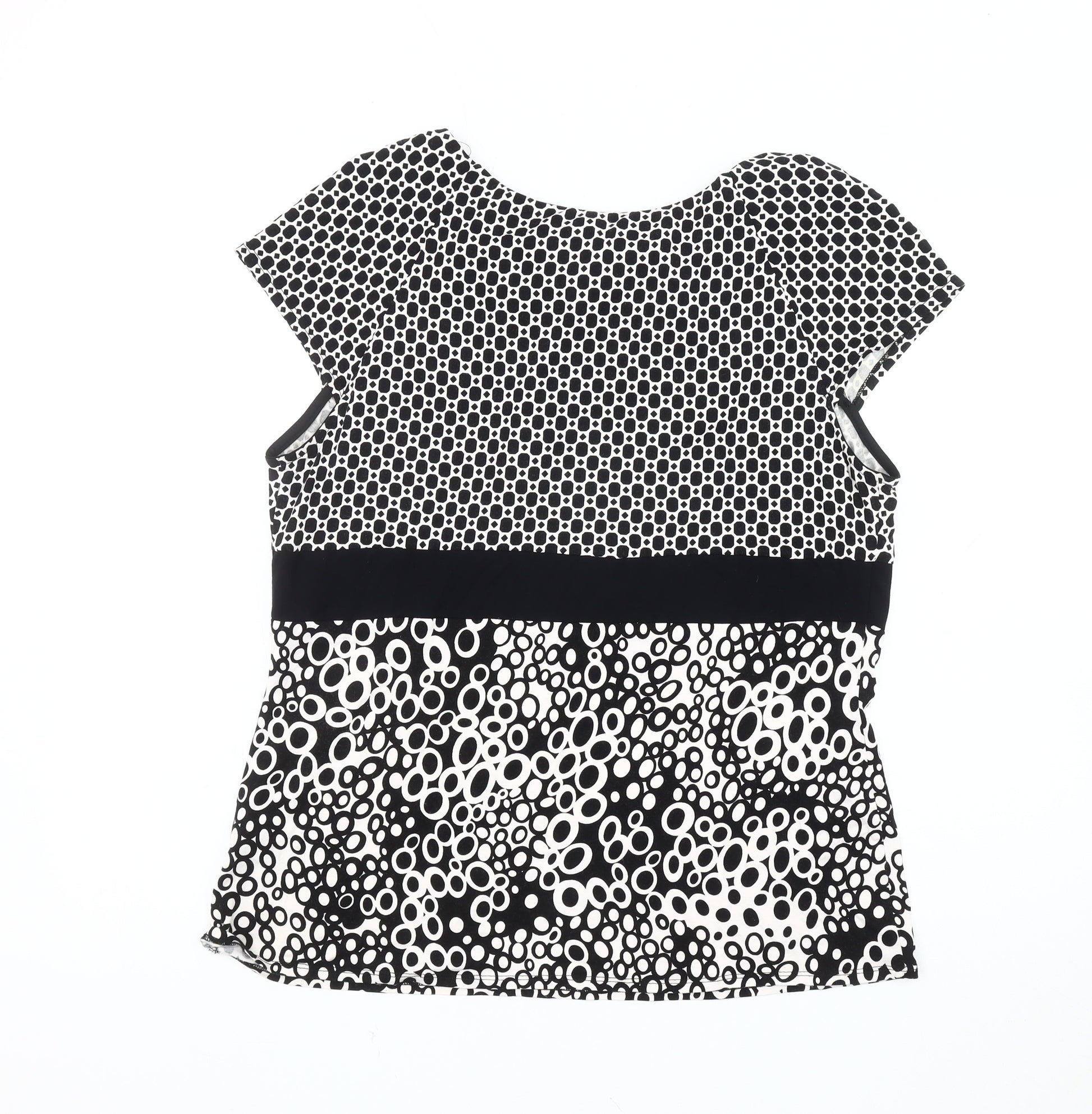 Elevate your wardrobe with this stylish Marks and Spencer geometric blouse, perfect for both casual and workwear settings. Crafted with a comfortable blend of 95% viscose and 5% elastane, this short sleeve top offers a flattering fit that's ideal for all-day wear. Its classic round neck and striking black and white design add a touch of sophistication, making it a versatile addition to any fashion collection. Designed for women who appreciate both comfort and elegance, this blouse is suitable for all seasons and can easily be paired with your favourite trousers or skirts. Enjoy the ease of machine washing with this durable yet chic piece. Whether you're heading to the office or enjoying a day out, this Marks and Spencer blouse is your go-to choice for effortless style.