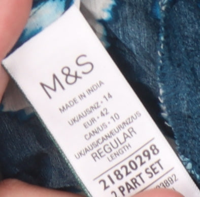 Marks and Spencer Womens Blue Geometric Viscose A-Line Size 14 V-Neck Pullover