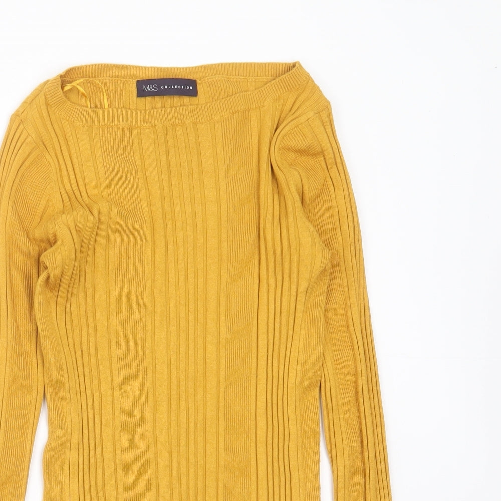 Womens Gold Round Neck Striped Viscose Pullover Jumper Size 10