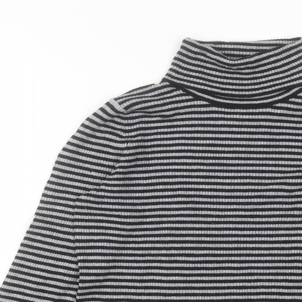 Womens Gold Striped Viscose Basic T-Shirt Size 16 Roll Neck