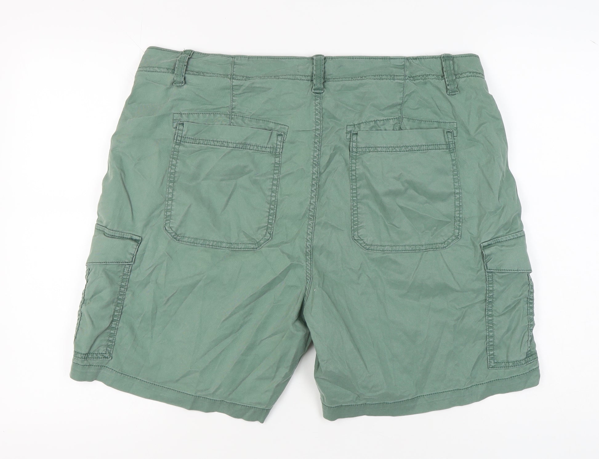 Elevate your summer wardrobe with these stylish green cargo shorts from Marks and Spencer. Made from a premium blend of lyocell, cotton, and elastane, these shorts promise comfort and durability. The regular fit and flat front design make them an ideal choice for casual outings or relaxed weekends. Featuring functional cargo pockets and a convenient button and zip closure, they offer practicality alongside style. Suitable for a sunny day out or casual get-togethers, pair these versatile shorts with your favourite top for a chic and comfortable ensemble. With new tags attached, these shorts are a great addition to your collection, offering quality and style at an affordable price.