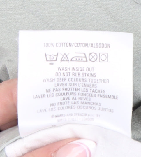 Embrace effortless style with these Marks and Spencer Women's Chino Trousers in a refreshing willow green. Perfectly crafted for comfort and elegance, they are made from 100% high-quality cotton, ensuring breathability and softness for all-day wear. The straight leg style provides a classic silhouette, suitable for everyday casual occasions or a relaxed business look. With a regular fit and a simple button closure, these trousers offer a flattering and comfortable option for any wardrobe. A flat front design keeps the lines clean and polished, while the 31-inch inside leg makes them perfect for pairing with your favourite shoes or flats. Vintage-inspired, these trousers maintain a timeless appeal that never goes out of fashion. Although gently worn, they are in excellent condition and ready to enhance your style. Don't miss out on this elegant addition to your collection, offering both versatility and a touch of vintage charm. Machine washable for easy care, they are an excellent choice for the modern, fashion-conscious woman looking to combine practicality with style.