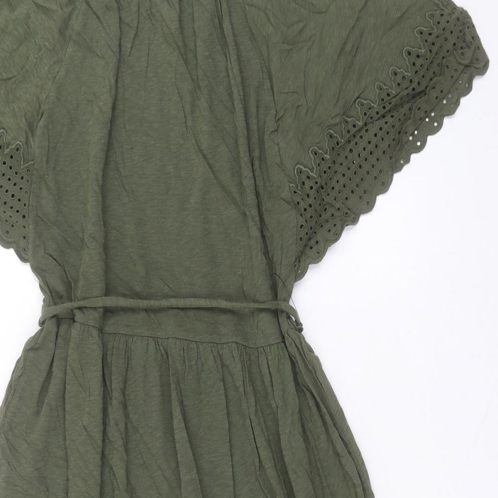 Womens Green Cotton A-Line Size 10 Crew Neck Button
