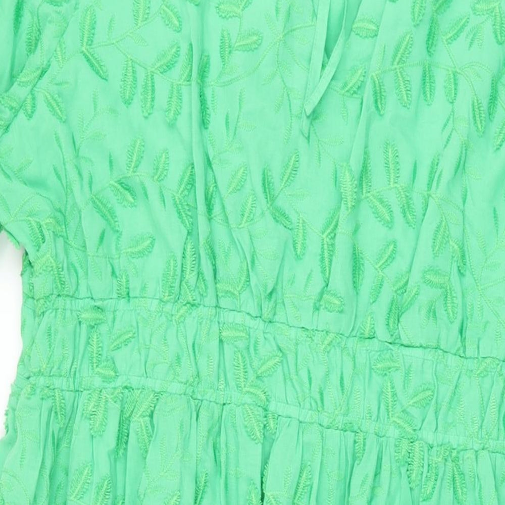 Womens Green Cotton A-Line Size 22 V-Neck Zip