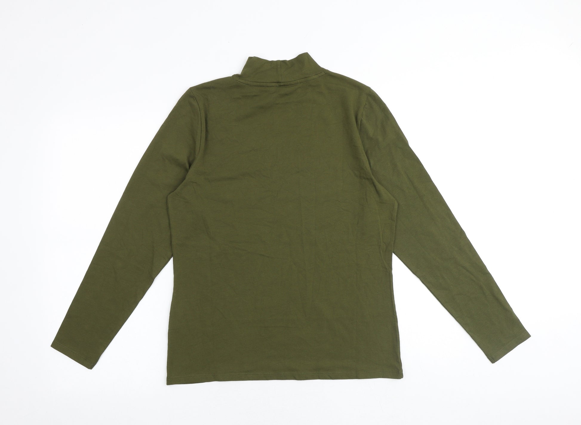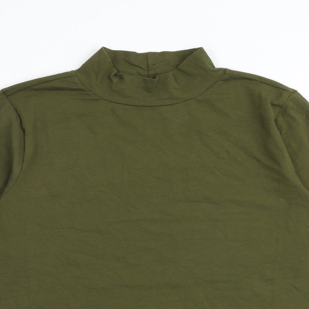 Womens Green Cotton Basic T-Shirt Size 14 High Neck