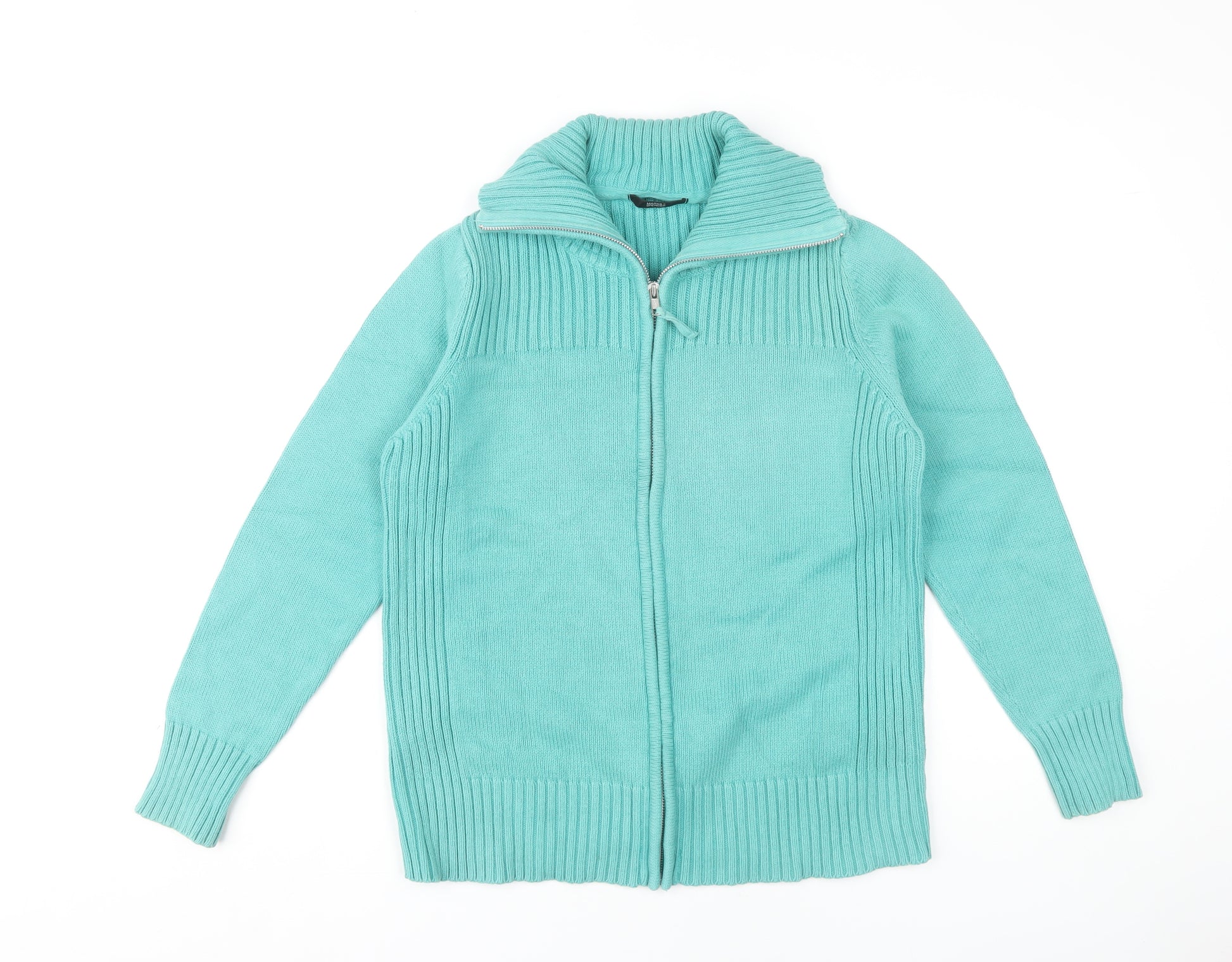 Discover style and comfort with this Marks and Spencer Women's Green Full Zip Jumper. Made with a luxurious blend of 93% cotton and 7% polyamide, this piece ensures a soft and durable wear. Featuring a classic full zip style, it's ideal for easy layering or wearing open for a relaxed look. This green jumper, crafted with a knit fabric, is perfect for adding a pop of colour to your ensemble. Designed for the modern woman, it comes in a regular size 18, making it suitable for casual occasions. Enjoy the flexibility of long sleeves, suitable for all seasons, whether you're heading to a casual outing or a laid-back occasion. This jumper boasts the trusted quality of Marks and Spencer, offering both style and function. Machine washable for easy care, it ensures you stay chic and comfortable. Elevate your wardrobe with this versatile piece, perfect for any fashion-forward individual.
