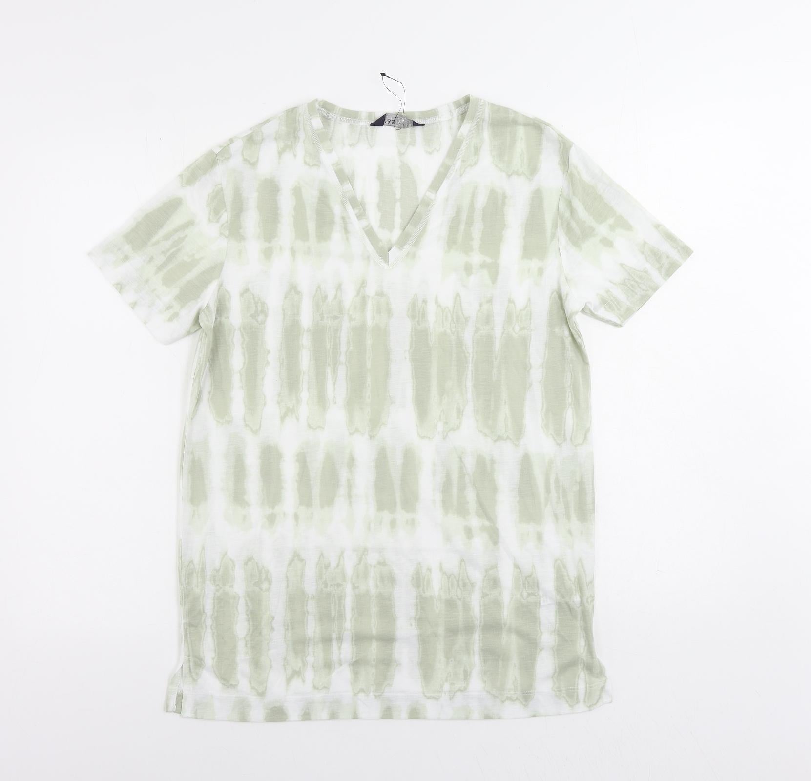 Womens Green Geometric Polyester Basic T-Shirt Size 8 V-Neck