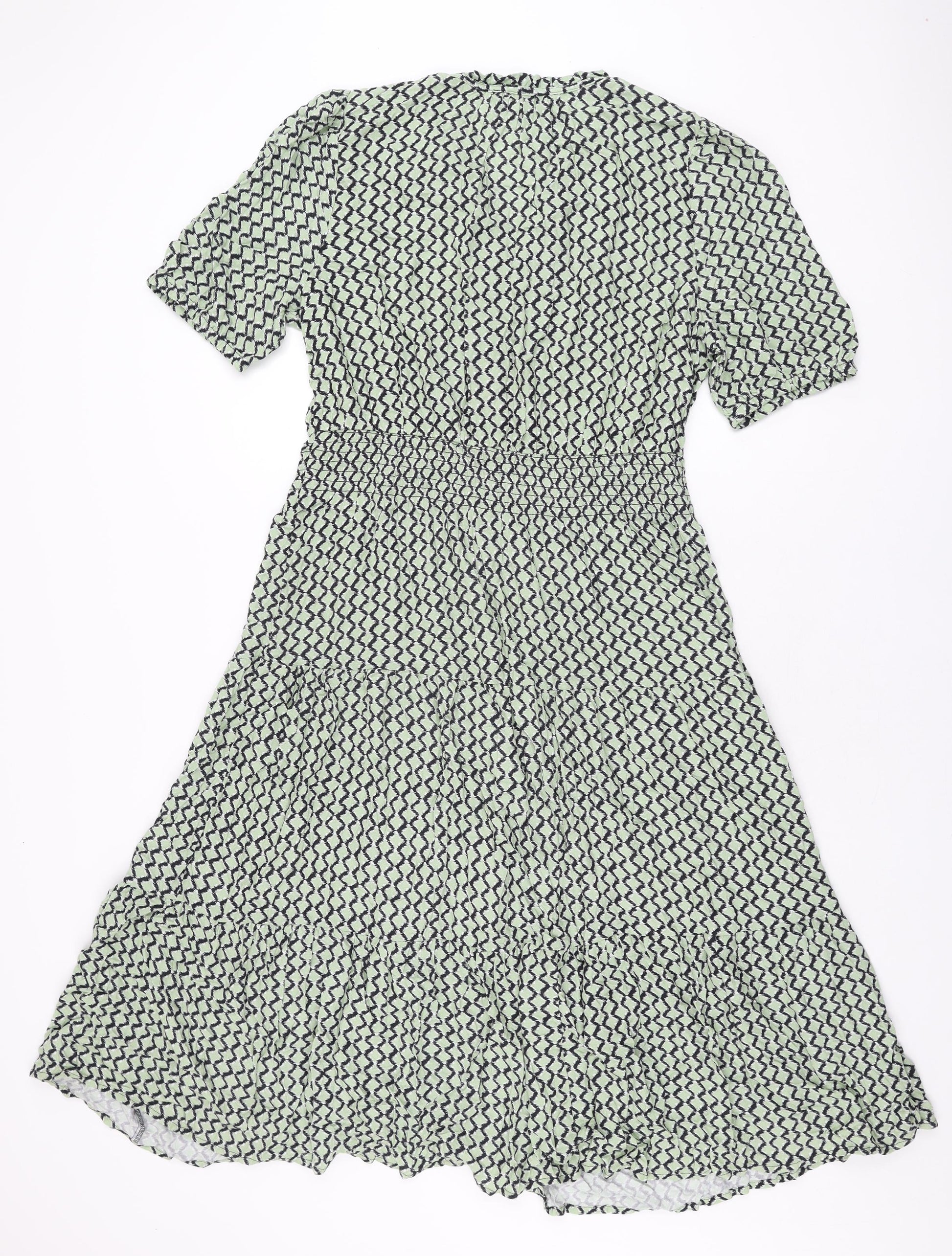 Womens Green Geometric Viscose A-Line Size 14 V-Neck Pullover