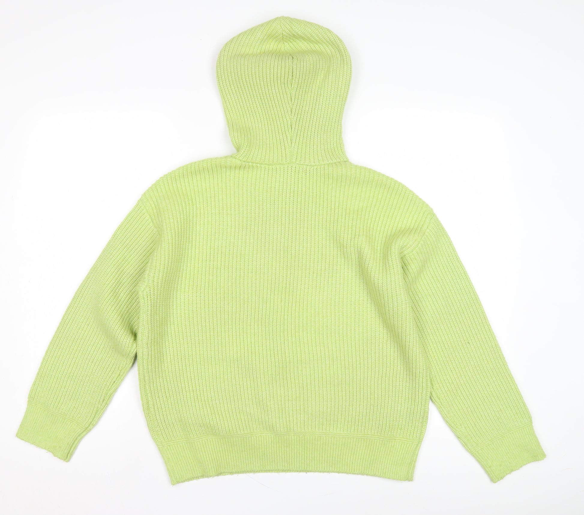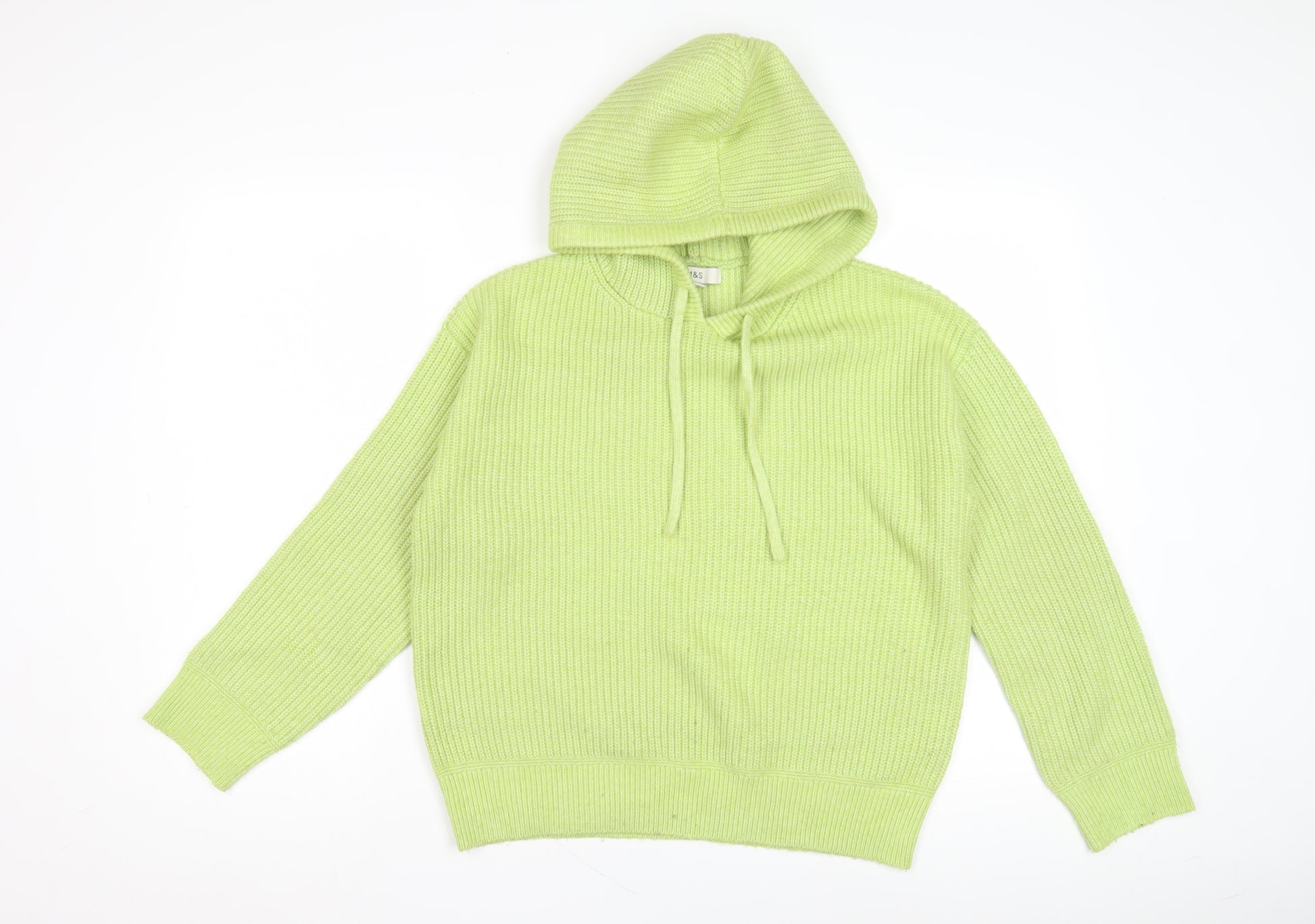 Elevate your casual wardrobe with this chic Marks and Spencer hooded pullover jumper, showcasing a refreshing green hue that's perfect for the autumn and winter seasons. Expertly crafted with a blend of acrylic, nylon, and wool, it offers both warmth and style, ensuring a snug fit for cooler days. This regular fit jumper in size small features a chunky-knit design, enhanced by a comfortable hooded neckline, making it an ideal choice for effortless layering. Whether you're out for a casual stroll or embracing a cozy day indoors, this versatile piece promises both comfort and flair. Ideal for women with a penchant for modern fashion, its casual appeal is bound to make an impressive statement. Embrace this must-have piece, and enjoy the blend of fashion and functionality it brings to your wardrobe.