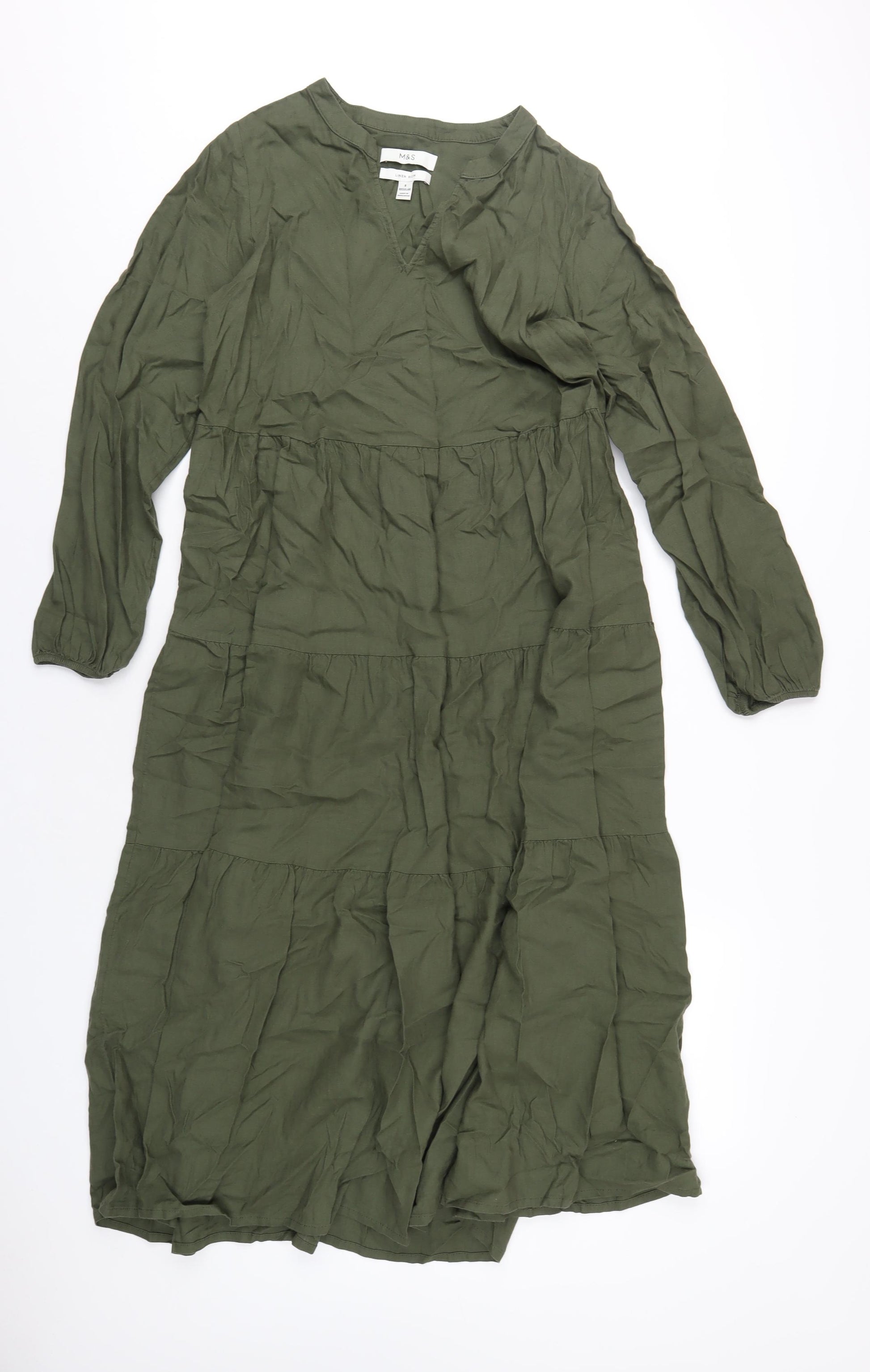 Womens Green Linen A-Line Size 8 V-Neck Pullover