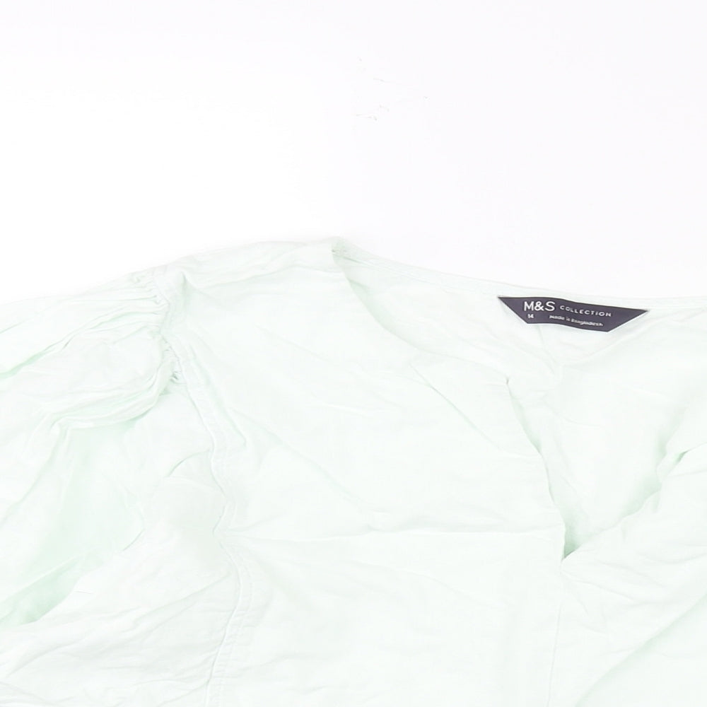 Womens Green Linen Basic Blouse Size 14 V-Neck