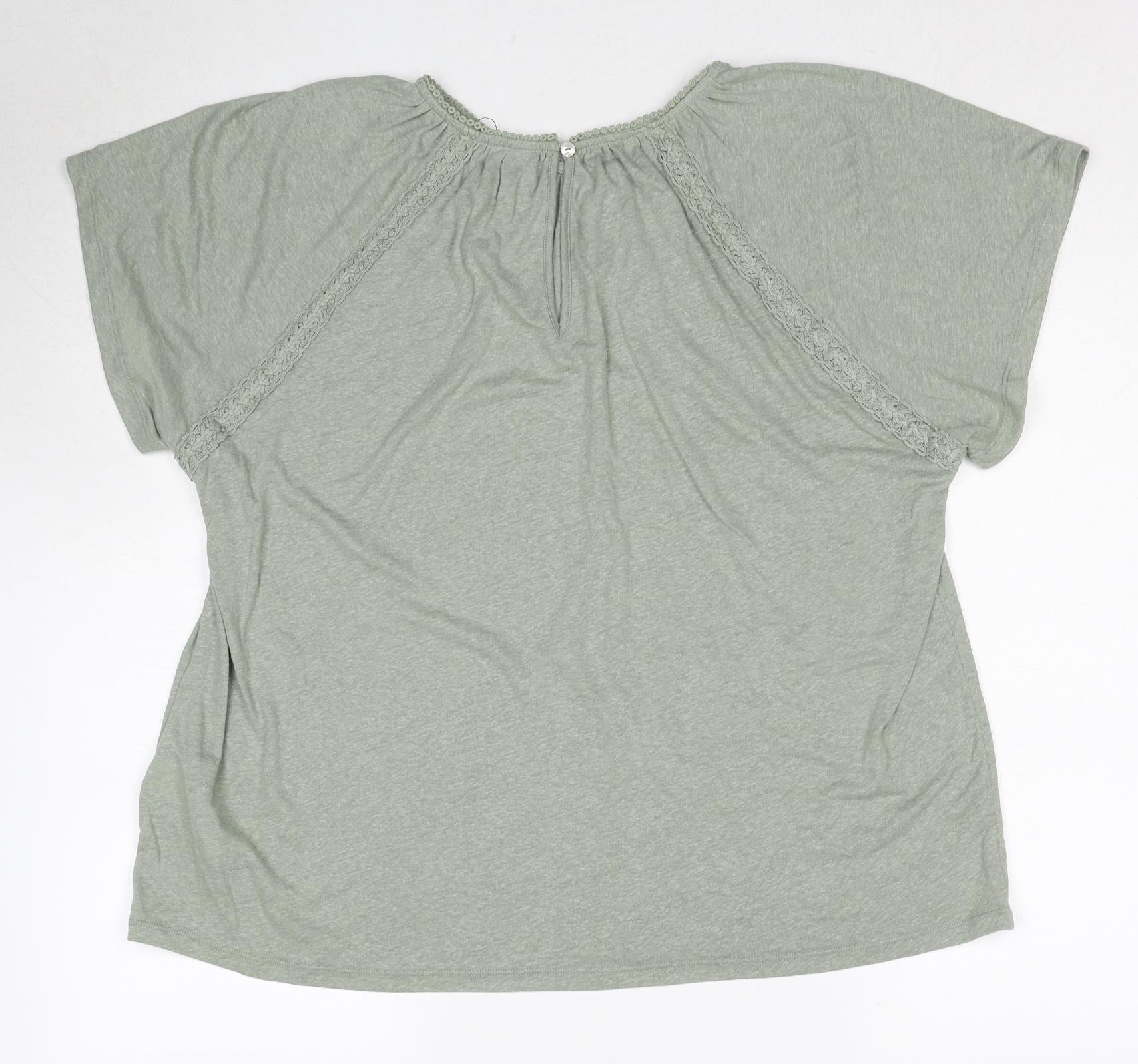 Womens Green Linen Basic T-Shirt Size 14 Round Neck