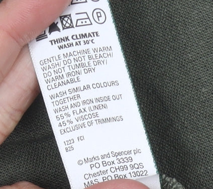 Step into effortless style with this elegant skirt from Marks and Spencer, crafted for the modern woman seeking both comfort and chic elegance. Designed in a versatile green shade, this short-length skirt is perfect for those warm spring and summer days. Made from a blend of lightweight linen and viscose, it offers a breathable and comfortable fit that drapes beautifully for a relaxed yet stylish silhouette. This skirt features a practical elastic waist and drawstring closure, adding a touch of flexibility and ease for any casual outing. Ideal for everyday wear, it pairs beautifully with almost any top in your wardrobe, whether you're heading to a cozy brunch or a casual day at the park. Embrace the understated charm and the quality craftsmanship that Marks and Spencer is renowned for. With its classic, no-pattern design, this skirt offers endless styling possibilities, ensuring that it becomes a staple in your wardrobe. Easy to care for and a testament to thoughtful fashion choices, this piece offers a fresh take on casual style without compromising on sophistication. Its excellent condition and superior fabric make it an irresistible choice for the fashion-forward woman who appreciates quality and effortless grace in her wardrobe.