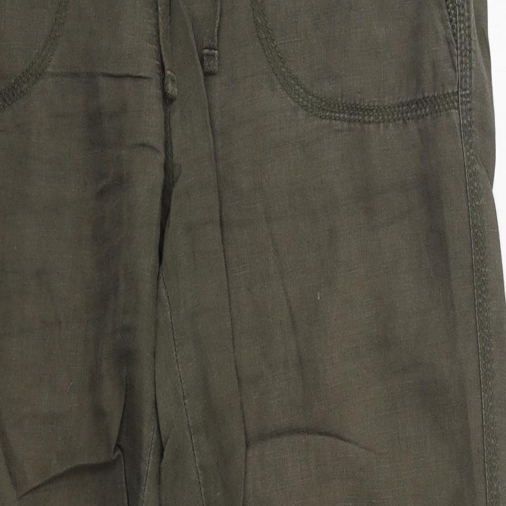 Womens Green Linen Trousers Size 12 L30 in Regular Drawstring